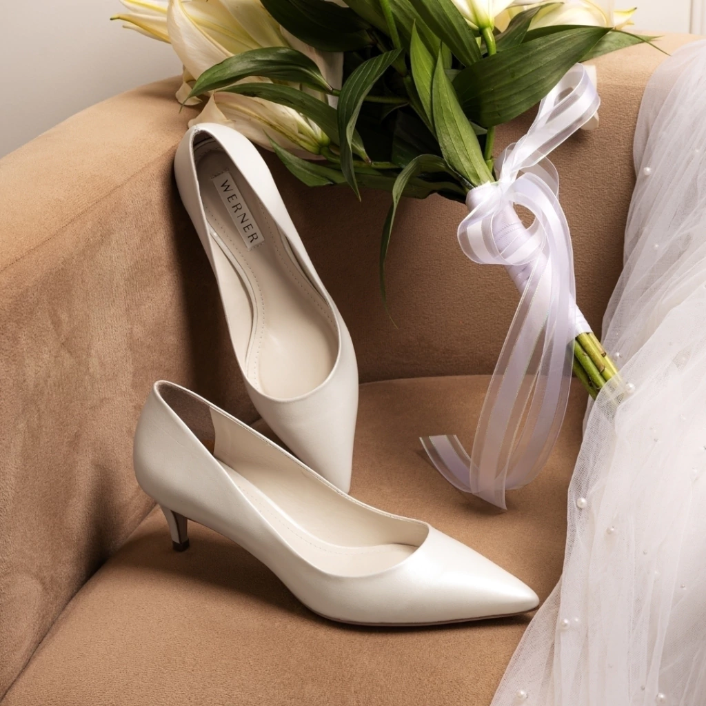 O Scarpin Salto Baixo Couro Branco Perolado Laís Werner é a escolha perfeita para quem busca elegância atemporal com máximo conforto. Confeccionado em material couro branco perolado de acabamento acetinado, o modelo tem bico fino e salto baixo de 4 cm -- ideal para quem prefere um calçado delicado, discreto e versátil para o grande dia.