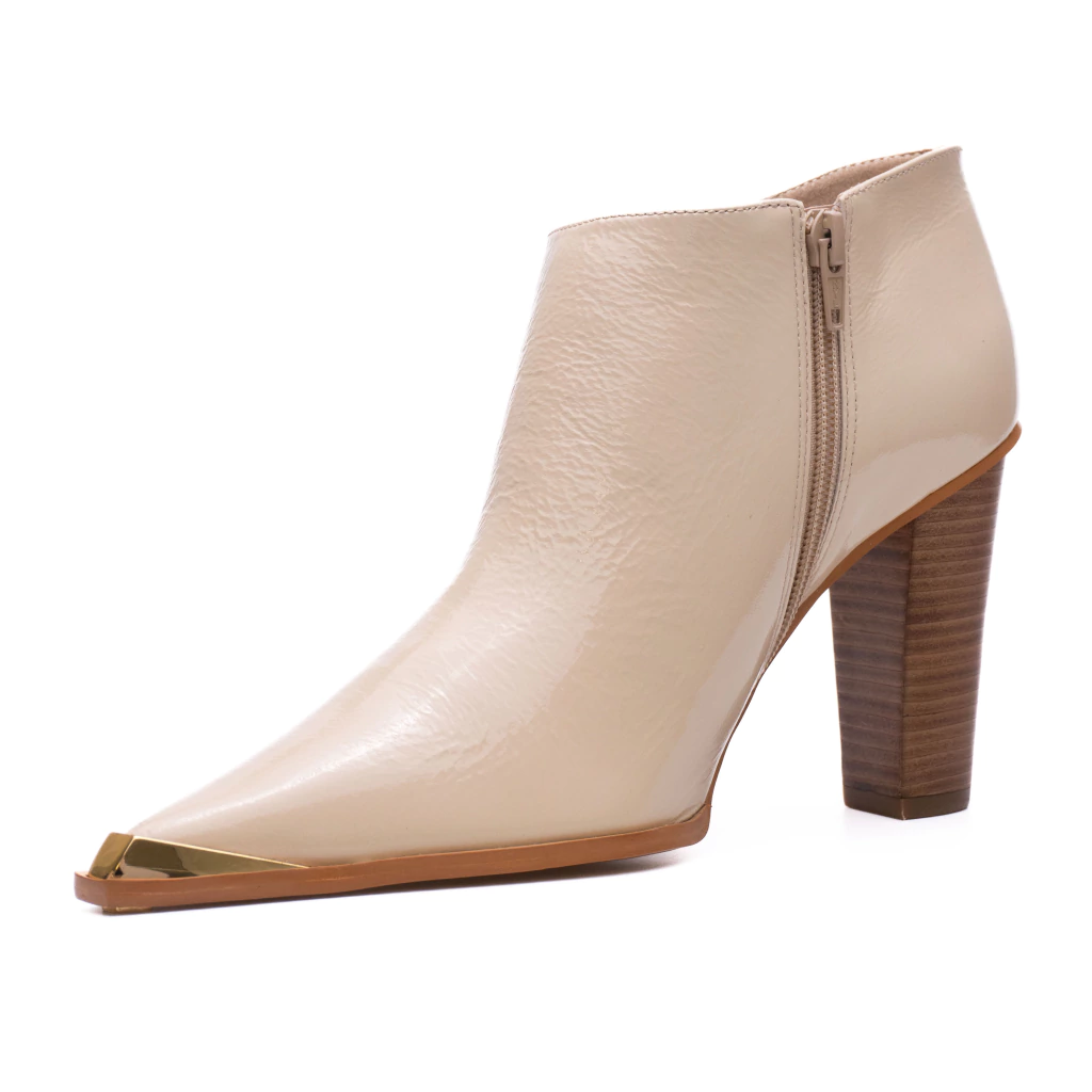 A cor desse modelo é um tom de nude em material verniz levemente texturizado couro.