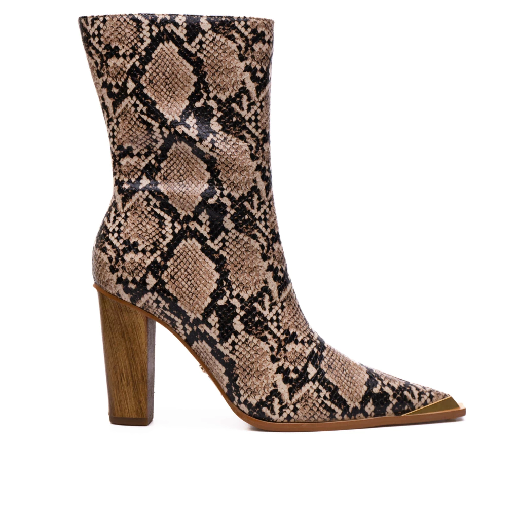Adicione um toque de sofisticação com a bota Valena de cano médio, perfeita para quem gosta de um design moderno e elegante. O bico fino conta com um detalhe metálico dourado que traz refinamento à peça, enquanto o salto grosso na altura de 9,5cm proporciona conforto e estabilidade ao caminhar. Possui fechamento em zíper lateral, garantindo um calce fácil e prático.