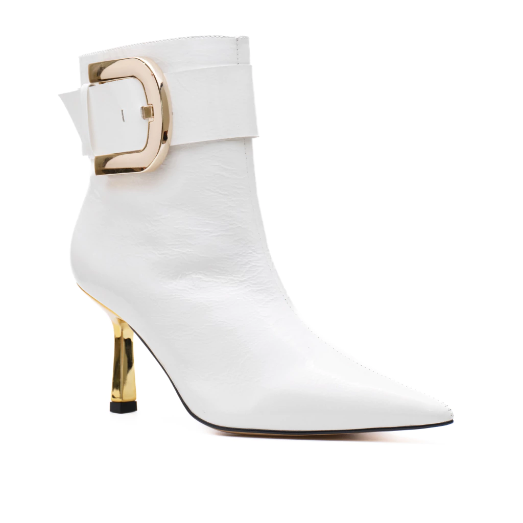 A bota Odessa é perfeita para quem busca sofisticação e estilo. Apresenta um design refinado com bico fino, proporcionando um toque moderno e sofisticado ao look. O detalhe de fivela dourada na lateral adiciona um charme extra, enquanto o salto fino na altura de 8cm com acabamento metálico dourado traz um ar luxuoso e contemporâneo.