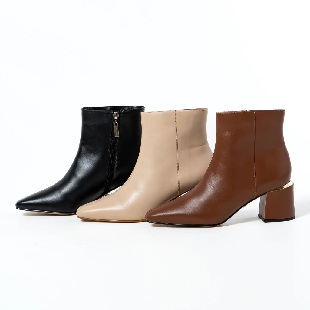 Para quem busca um toque moderno e sofisticado, a bota Lucinda de cano curto é a escolha ideal. Seu design minimalista com bico levemente quadrado e salto bloco na altura de 6cm traz elegância e conforto para qualquer ocasião. O detalhe metalizado no salto adiciona um charme extra. O fechamento lateral em zíper garante praticidade e um calce rápido.