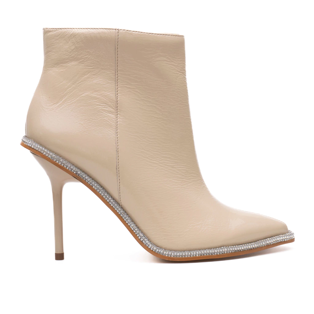 A cor desse modelo é um tom de nude em verniz levemente texturizado.