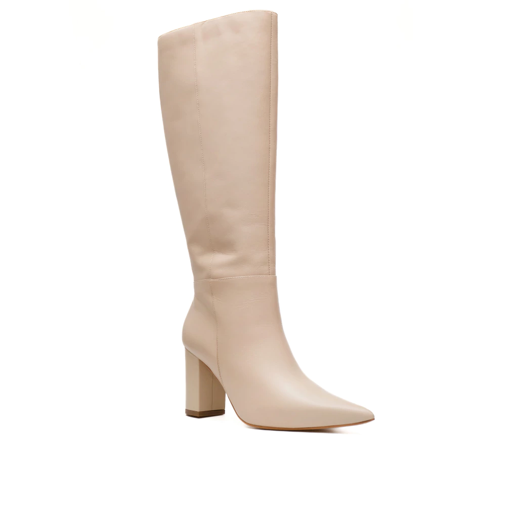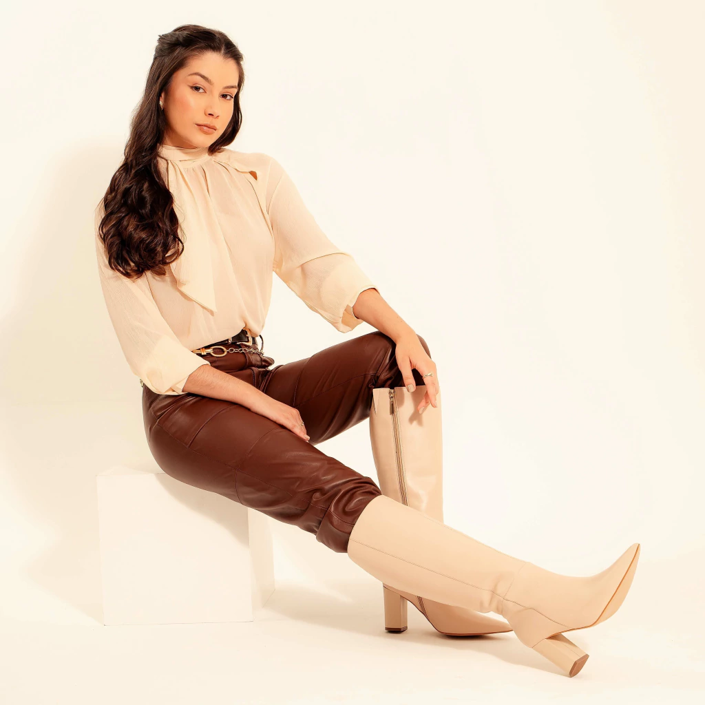 A bota Zoe de cano alto em couro é a escolha perfeita para quem busca sofisticação e versatilidade. Com design minimalista, bico fino e salto bloco médio na altura de 8cm, ela proporciona estabilidade e estilo para qualquer ocasião. O fechamento lateral em zíper garante praticidade e um calce rápido.