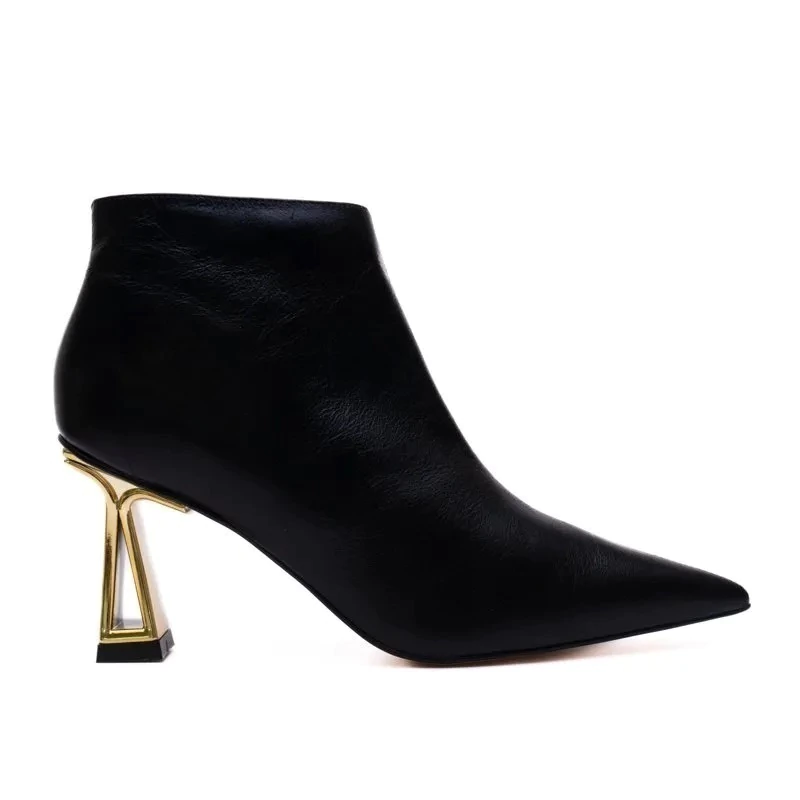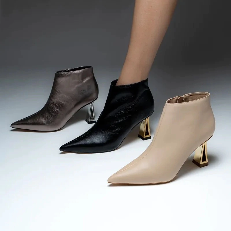 Exale sofisticação e ousadia com a bota Drika de cano curto. Apresenta design minimalista e elegante, perfeito para elevar qualquer look. O grande destaque é o salto geométrico metálico na altura de 8cm, que combina modernidade e glamour, além de proporcionar um toque único e diferenciado. O fechamento lateral em zíper garante praticidade e um calce rápido.