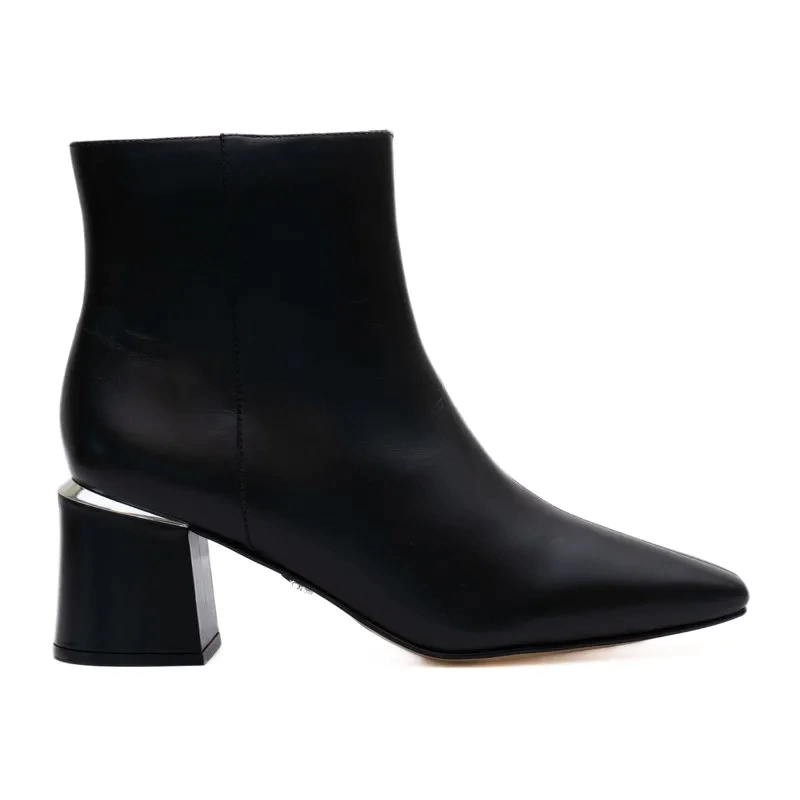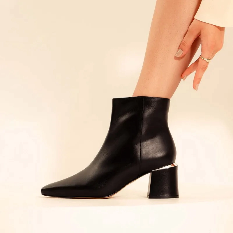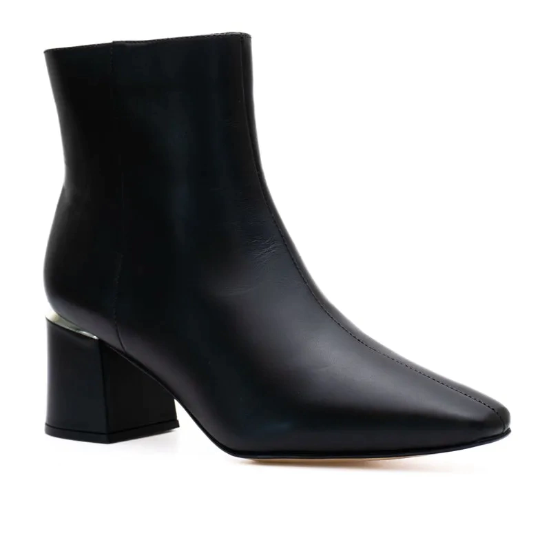 Para quem busca um toque moderno e sofisticado, a bota Lucinda de cano curto é a escolha ideal. Seu design minimalista com bico levemente quadrado e salto bloco na altura de 6cm traz elegância e conforto para qualquer ocasião. O detalhe metalizado no salto adiciona um charme extra. O fechamento lateral em zíper garante praticidade e um calce rápido.