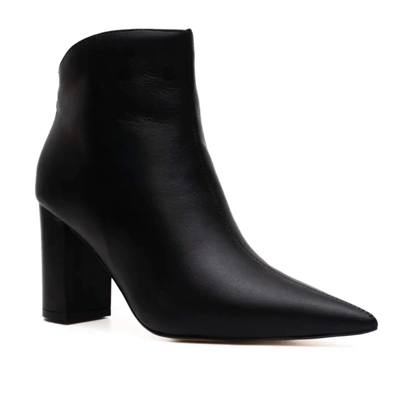 A bota Stella de cano curto é ideal para quem busca um toque elegante e versátil no dia a dia. O design minimalista com bico fino alonga a silhueta, enquanto o salto médio na altura de 8cm garante conforto e estabilidade. O detalhe do zíper traseiro adiciona praticidade e um charme extra ao modelo.