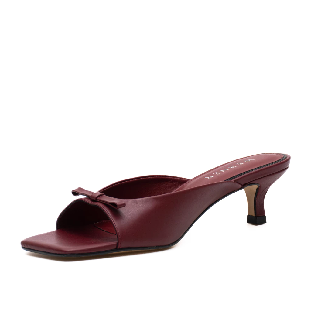 A cor desse modelo é um tom de bordô em material napa couro liso.
