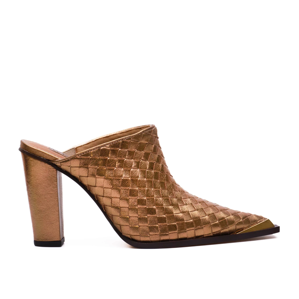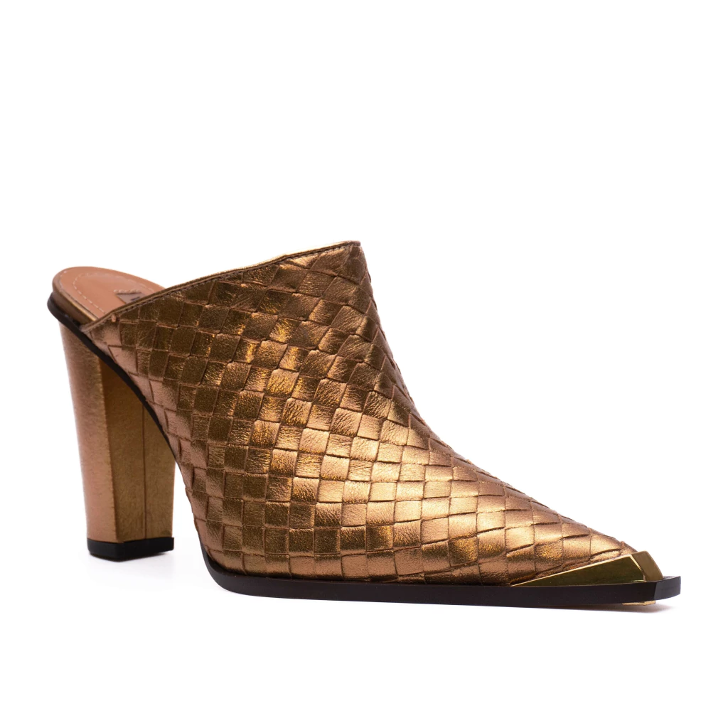 O Mule Isis é sofisticado e combina o charme artesanal do couro trançado com um toque moderno e refinado. A biqueira metálica adiciona um detalhe luxuoso, o salto bloco na altura de 9,5cm proporciona conforto e estabilidade, tornando este modelo ideal para quem busca estilo e deseja um toque moderno e sofisticado.