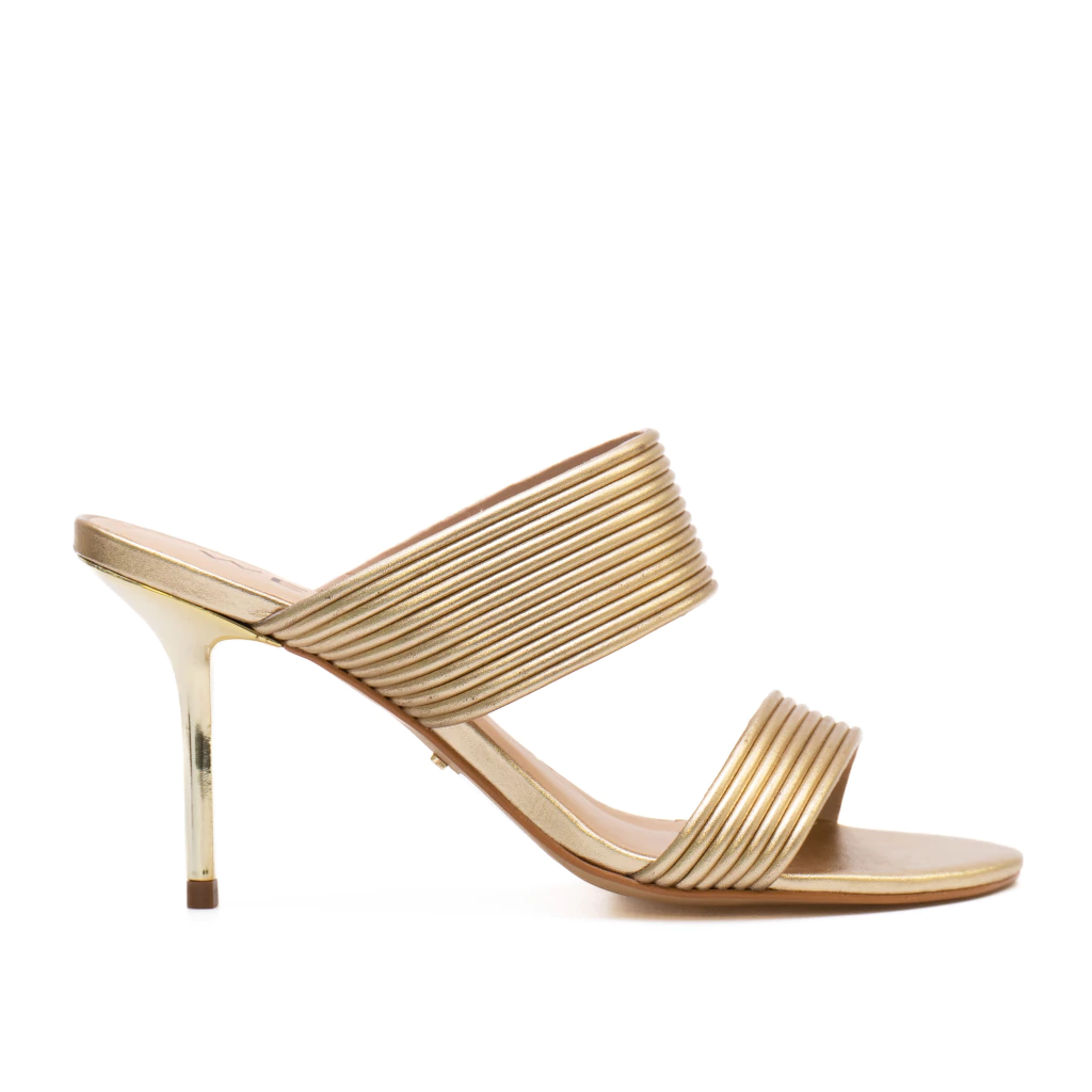 A mule Mavani exala sofisticação, sendo uma escolha versátil para quem valoriza elegância em cada passo. Com um design limpo e moderno, apresenta duas largas tiras, compostas por finas linhas paralelas que criam um efeito visual marcante, ao mesmo tempo que garantem maior segurança e conforto ao calçar. O salto na altura de 8cm, acrescenta um toque refinado ao modelo.