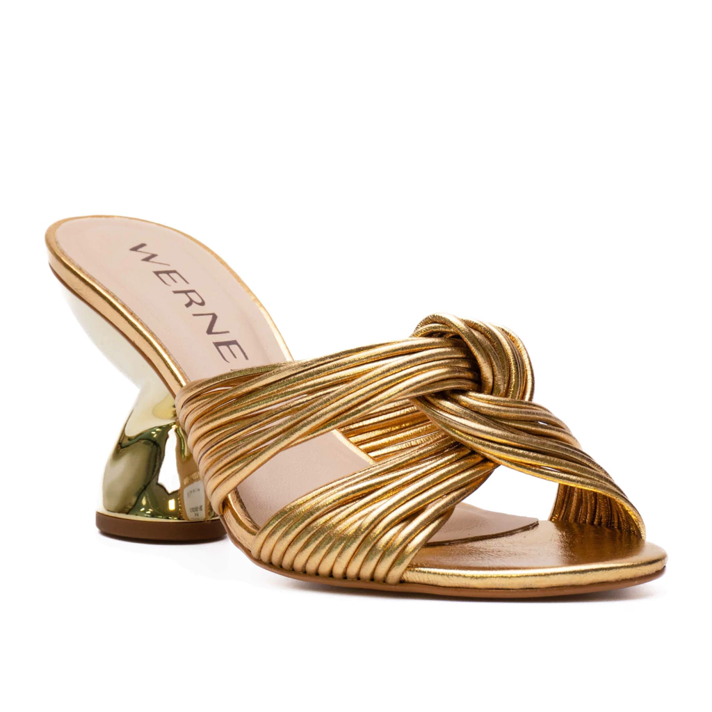 Com um design ousado e sofisticado, a mule Halsey é a escolha perfeita para mulheres que gostam de marcar presença com estilo e originalidade. O modelo combina tiras finas entrelaçadas na parte frontal, formando um nó elegante que proporciona um visual moderno e impactante. O grande destaque fica por conta do salto arquitetônico na altura de 8cm que traz uma acabamento metalizado dourado, que além de garantir estabilidade, eleva o look com um toque glamoroso e contemporâneo.