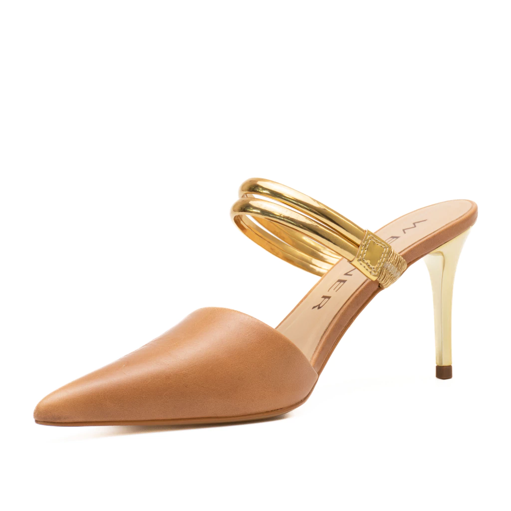A mule Irina é uma verdadeira declaração de estilo, ideal para mulheres que valorizam o design arrojado aliado ao luxo. Apresenta uma construção refinada, que confere um toque de requinte e versatilidade. O salto na altura de 8cm dourado, proporciona identidade única, transformando o calçado numa peça indispensável. As tiras superiores metálicas, acrescentam um brilho elegante e moderno.