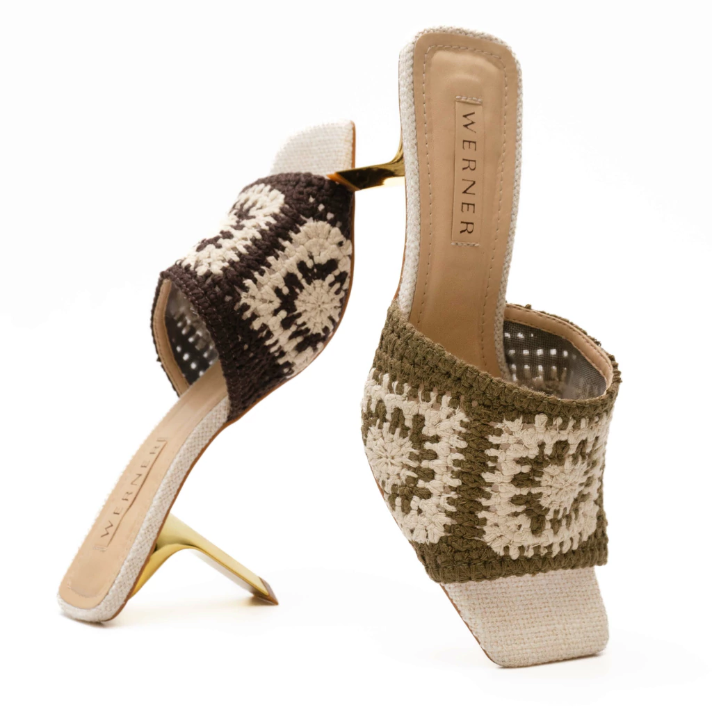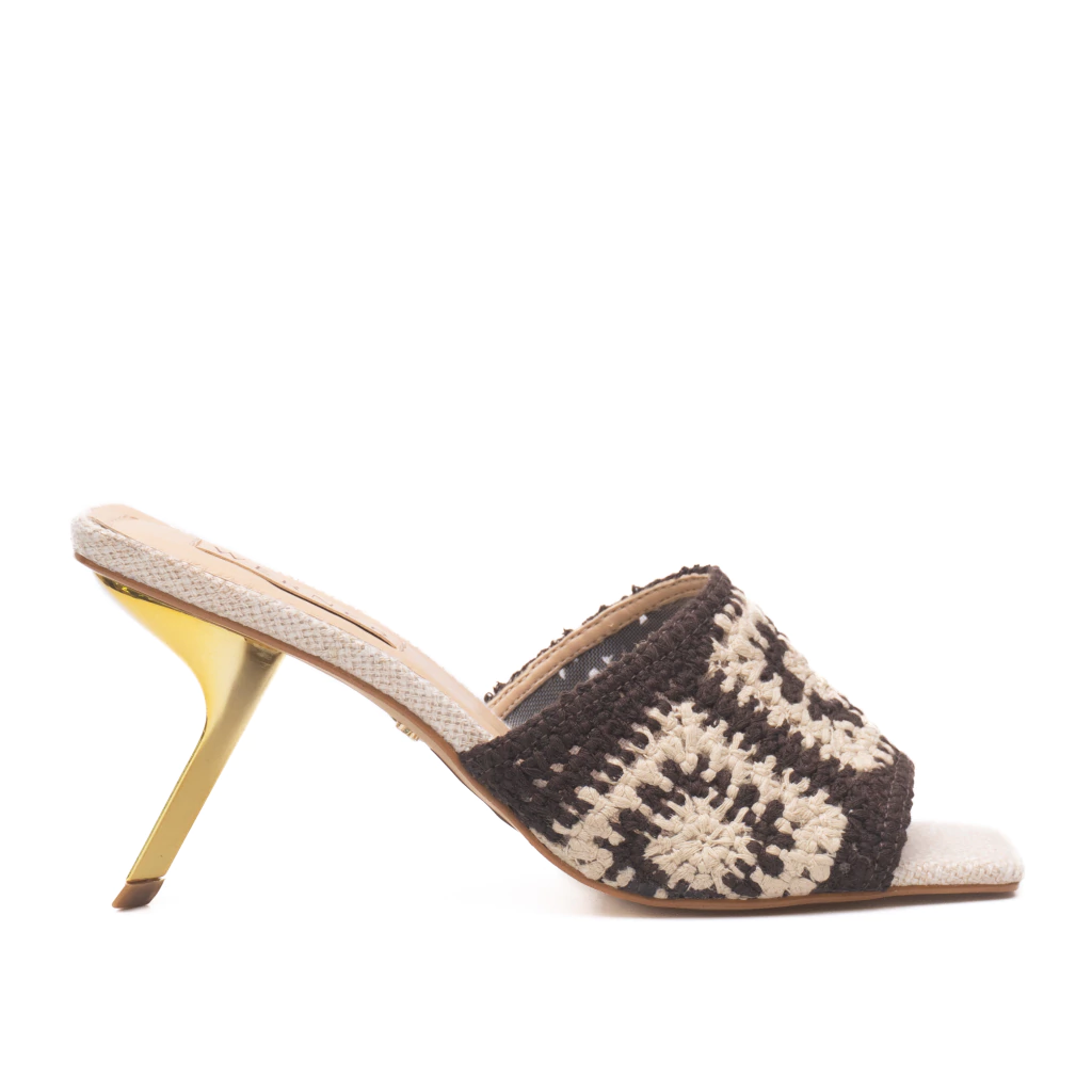 A mule Shavani combina elegância e um toque artesanal em um design sofisticado. A parte frontal é composta por uma faixa larga em tecido tramado com padrão geométrico, que valoriza a estética handmade e confere autenticidade ao modelo. O bico levemente quadrado traz modernidade, equilibrando linhas clássicas e atuais. O grande destaque está no salto médio na altura de 8cm com acabamento metálico, que adiciona sofisticação e personalidade, além de proporcionar estabilidade e conforto ao caminhar.