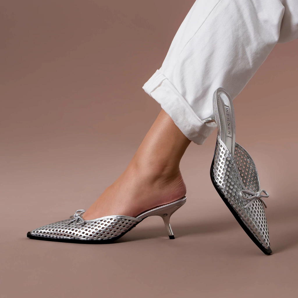 O mule Amália é a escolha perfeita para quem busca sofisticação e conforto, combina facilmente com diversos looks. Seu design vazado proporciona um toque moderno e arejado, enquanto o pequeno laço frontal adiciona um charme delicado. O salto médio na altura de 6,5cm garante elegância e conforto, tornando ideal para ocasiões casuais e sofisticadas.