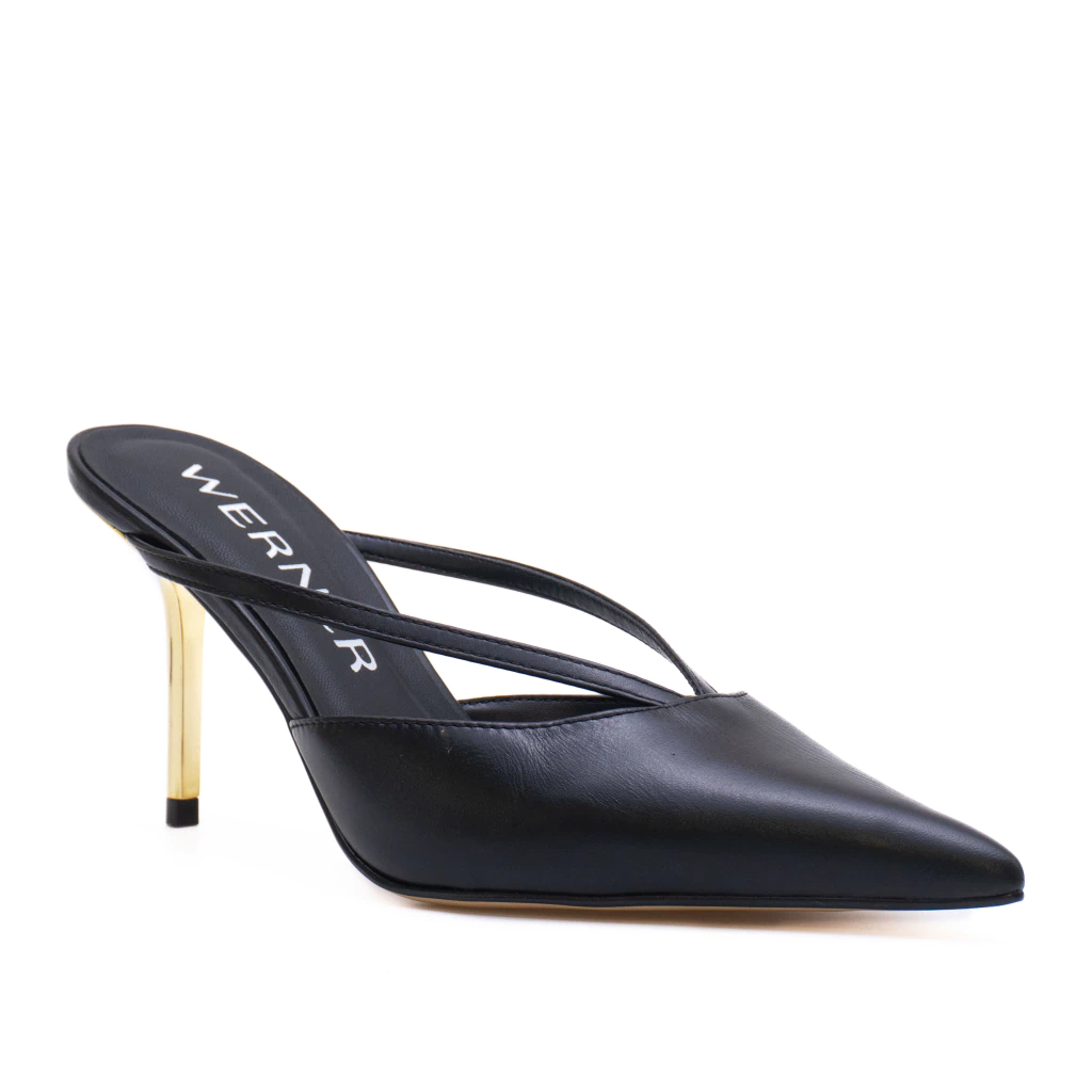A mule Azalea traz uma proposta sofisticada e elegante com design marcante e moderno. O cabedal fechado em formato alongado e bico fino confere um ar refinado e estilizado, enquanto as tiras finas diagonais criam um detalhe delicado sobre o peito do pé, garantindo charme e segurança ao calce. O salto na altura de 8cm acrescenta brilho e contraste ao visual, destacando ainda mais a silhueta do modelo.