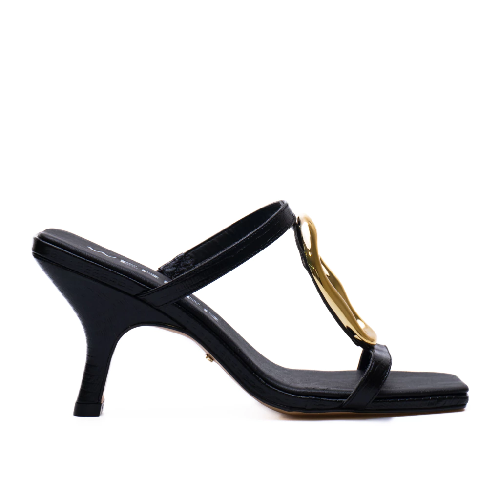 A mule Noelma com salto fino de 8cm, valoriza a silhueta com leveza e presença. Seu cabedal minimalista é realçado pela aplicação de enfeite metálico orgânico, que adiciona um toque moderno e sofisticado ao visual. O calce fácil e a estrutura confortável fazem deste modelo a escolha ideal para ocasiões que pedem estilo sem abrir mão da praticidade.
