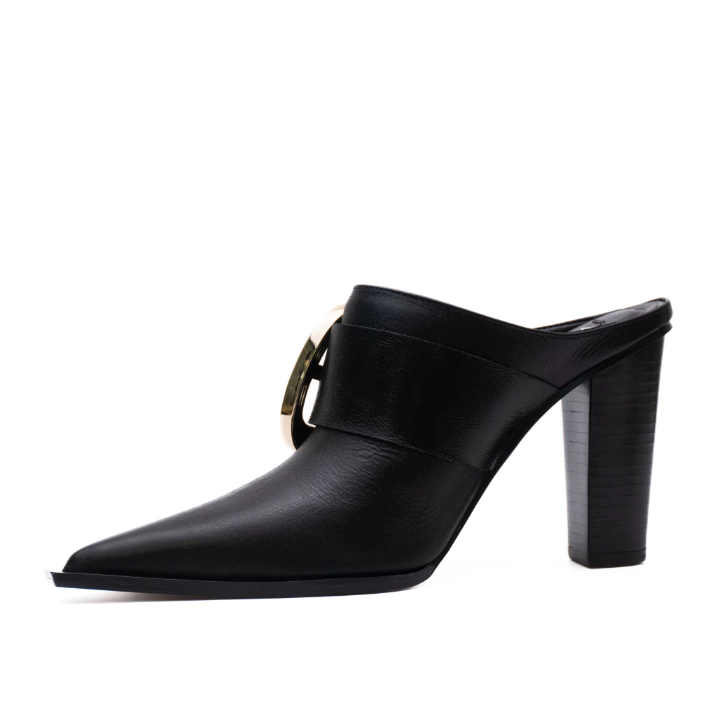 O Mule Odessa é a combinação perfeita de sofisticação e modernidade. O design apresenta um bico fino alongado, conferindo um toque refinado ao look. A estrutura aberta no calcanhar proporciona conforto e praticidade, junto ao salto grosso na altura de 9,5cm. O grande destaque do modelo é a fivela metálica, que adiciona um toque de luxo e personalidade ao calçado.
