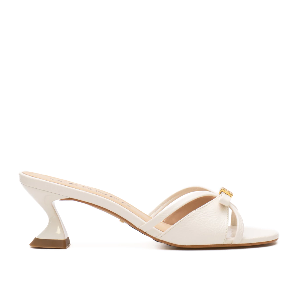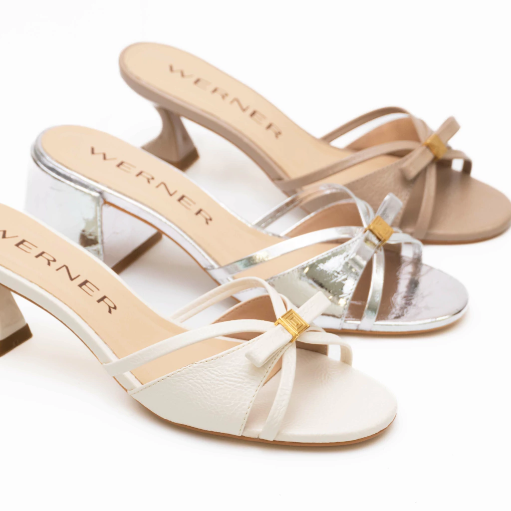 A mule Ariana é uma escolha sofisticada para quem procura estilo e conforto em um só modelo. O calçado apresenta um design delicado com tiras finas que cruzam o peito do pé, garantindo charme e leveza ao visual. O destaque fica por conta do laço frontal com detalhe metálico, que adiciona um toque de requinte e feminilidade. O salto na altura 5,5cm proporcionando maior conforto e estabilidade sem perder a elegância.