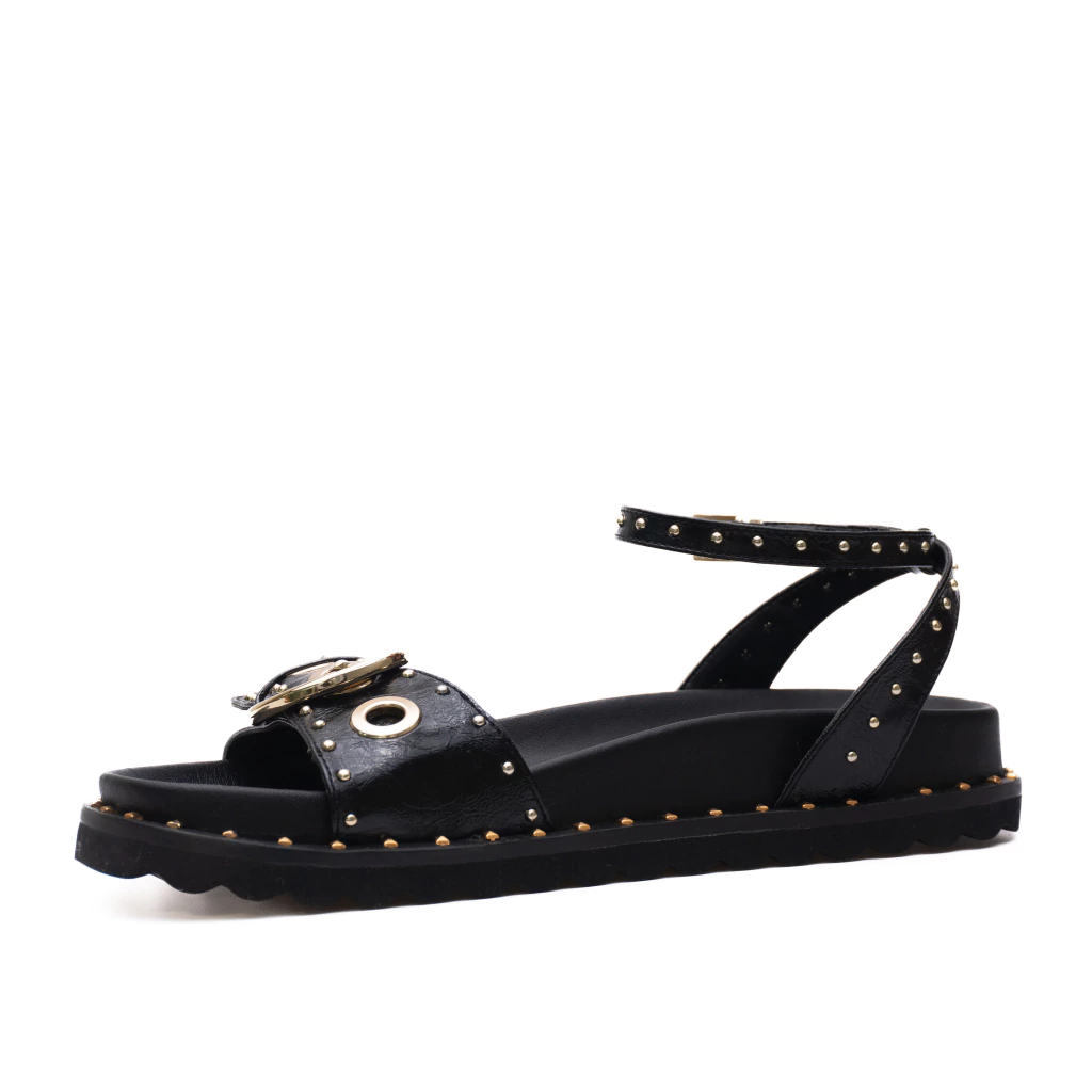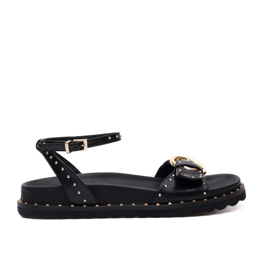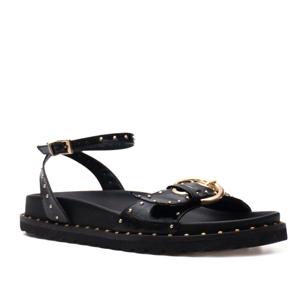 A papete Marnie é a escolha ideal para diversas ocasiões. Com uma tira larga sobre os dedos adornada por tachas metálicas e uma fivela dourada decorativa, ela traz um toque de sofisticação ao visual. O fechamento no tornozelo é feito por uma tira ajustável com fivela lateral, garantindo um ajuste preciso. Apresenta solado emborrachado, na altura de 2 cm, proporcionando segurança e estabilidade.