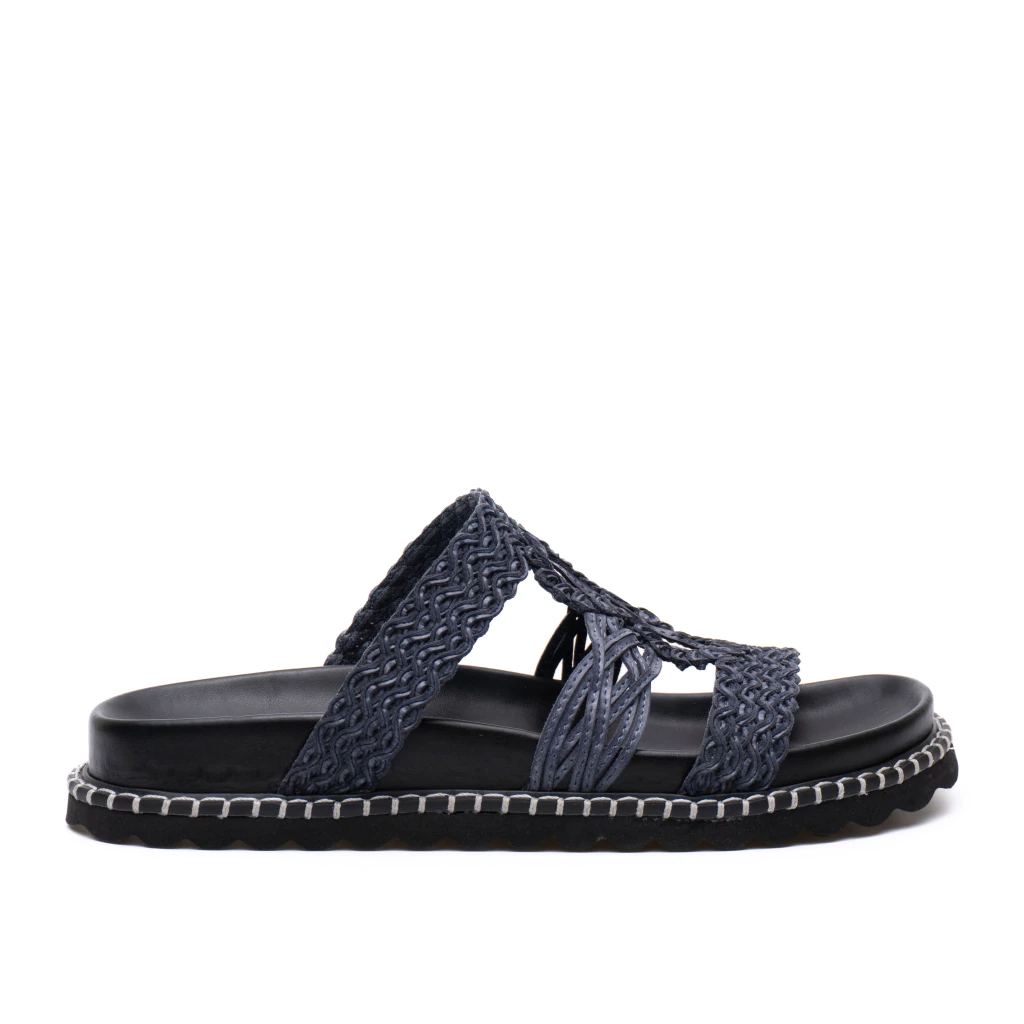 A Papete Preto Lalisa Werner tem altura de 2cm e bico redondo. Sua palmilha apresenta formato anatômico e traz cabedal vazado em palha tramada e trançada Deixa dedos, parte superior do pé e calcanhar à mostra.