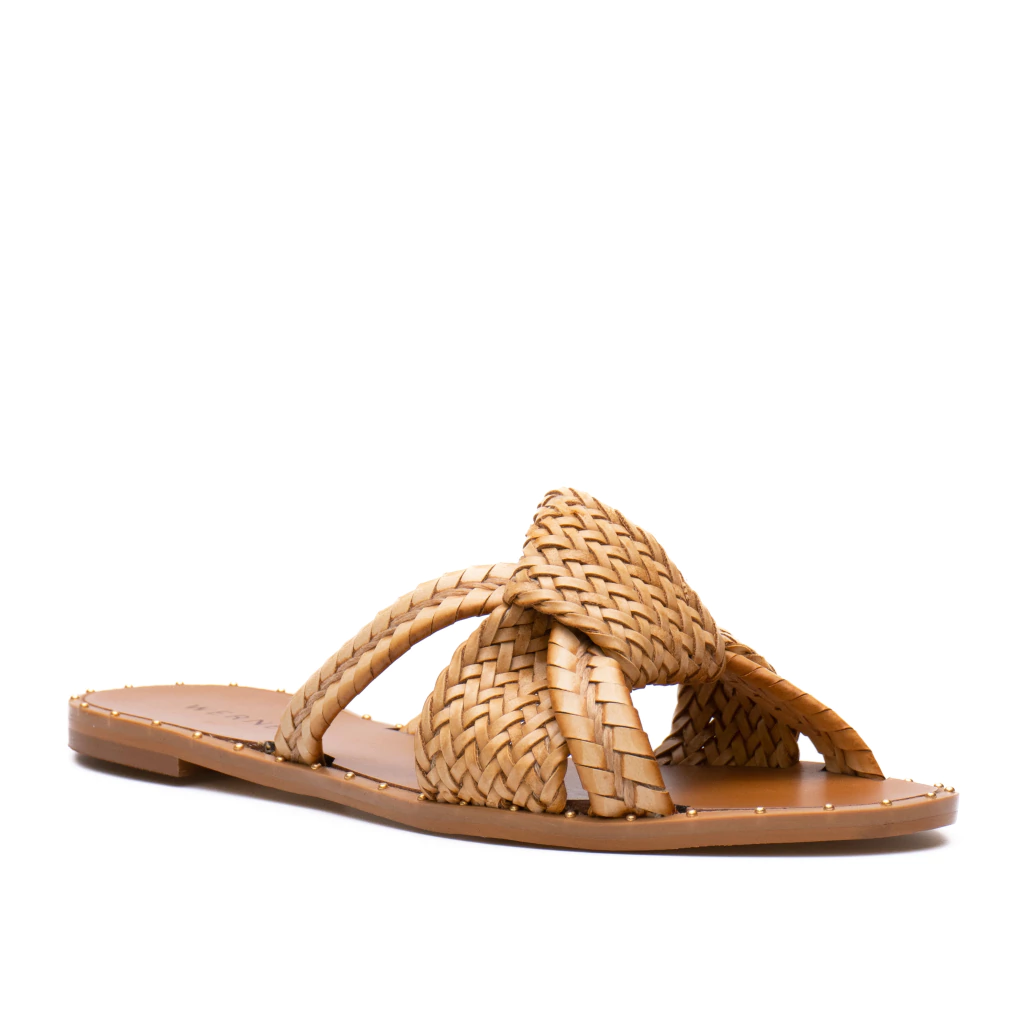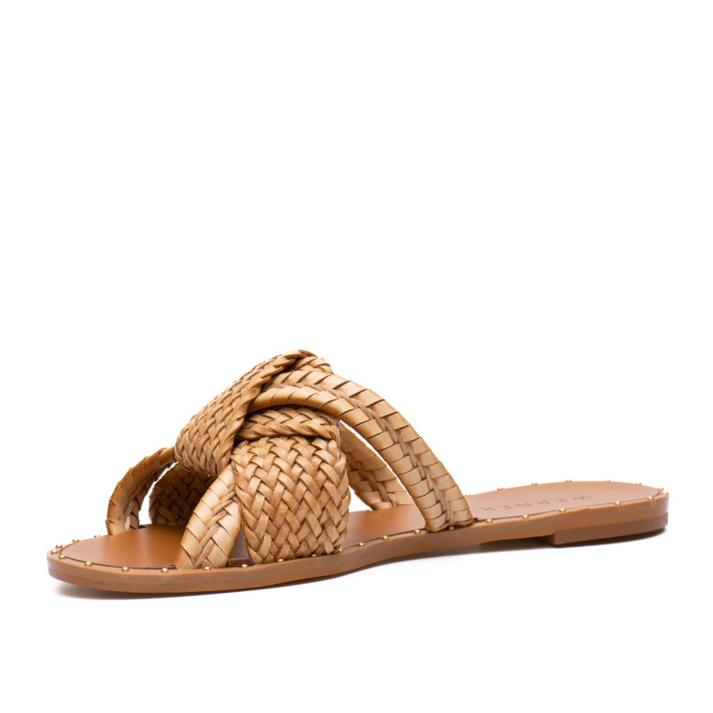 A Rasteira Caramelo Carmélia Werner tem salto rasteiro de 1cm e bico redondo. Seu cabedal é composto por nó central em material de palha tramada. Apresenta traseiro aberto sem fechamento, super fácil de calçar!
