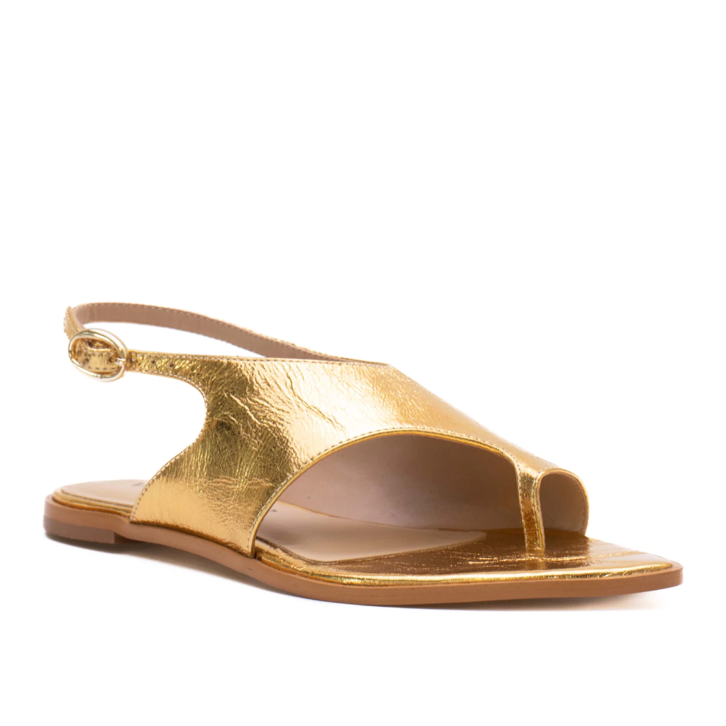A cor desse modelo é um tom de dourado em material metalizado texturizado couro.