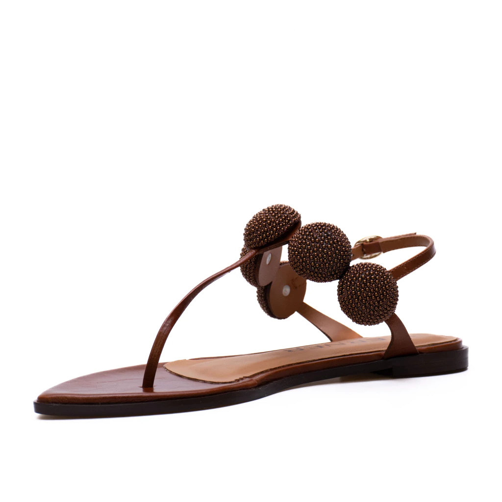A rasteira Ayumi é a escolha perfeita para quem deseja destacar-se com um toque de originalidade. O modelo apresenta estrutura delicada e minimalista, com tiras finas que envolvem o pé de forma confortável e segura. O grande diferencial está na aplicações de esferas revestidas com pequenas pedrinhas brilhantes, que criam um visual rico e sofisticado, adicionando uma estética marcante ao calçado. A fivela ajustável na lateral permite adaptar perfeitamente ao tornozelo, garantindo segurança no caminhar.