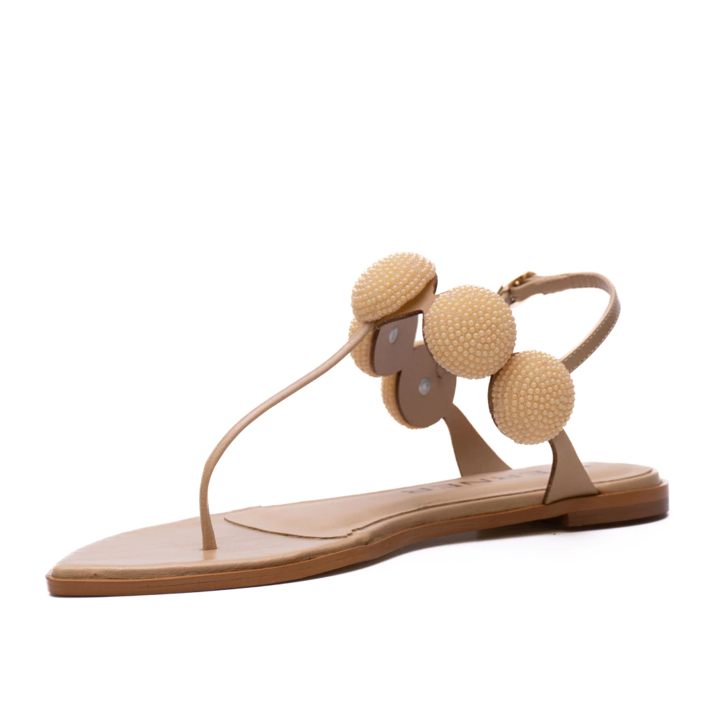 A rasteira Ayumi é a escolha perfeita para quem deseja destacar-se com um toque de originalidade. O modelo apresenta estrutura delicada e minimalista, com tiras finas que envolvem o pé de forma confortável e segura. O grande diferencial está na aplicações de esferas revestidas com pequenas pedrinhas brilhantes, que criam um visual rico e sofisticado, adicionando uma estética marcante ao calçado. A fivela ajustável na lateral permite adaptar perfeitamente ao tornozelo, garantindo segurança no caminhar.