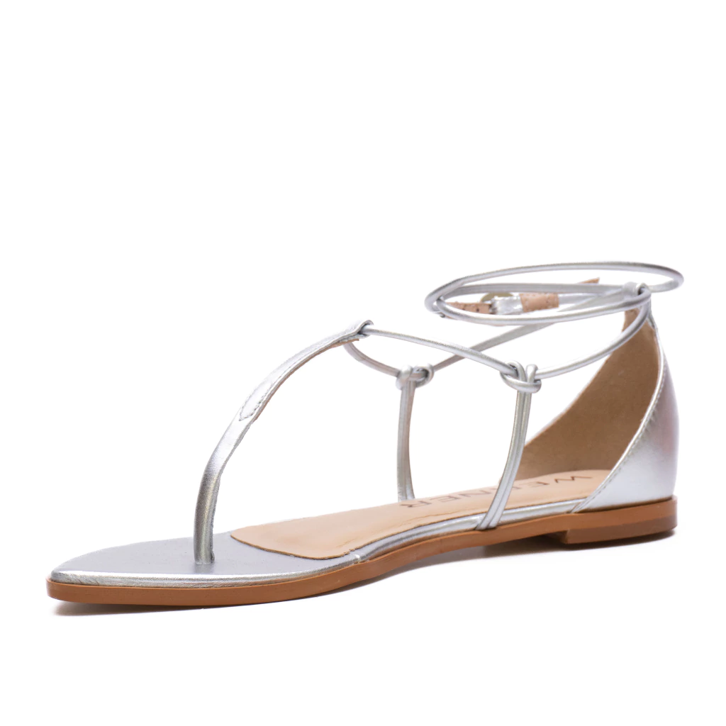 A rasteira Stormi combina simplicidade e elegância em um design versátil e confortável. Sua estrutura é composta por tiras finas e delicadas que se encontram na parte frontal em um detalhe de nó discreto, criando um visual minimalista e sofisticado. O modelo conta com fechamento em fivela metálica ajustável, localizada no tornozelo, que proporciona segurança e praticidade ao calçar enquanto o calcanhar fechado garante maior sustentação.