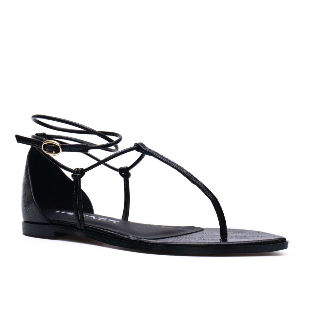 A rasteira Stormi combina simplicidade e elegância em um design versátil e confortável. Sua estrutura é composta por tiras finas e delicadas que se encontram na parte frontal em um detalhe de nó discreto, criando um visual minimalista e sofisticado. O modelo conta com fechamento em fivela metálica ajustável, localizada no tornozelo, que proporciona segurança e praticidade ao calçar enquanto o calcanhar fechado garante maior sustentação.