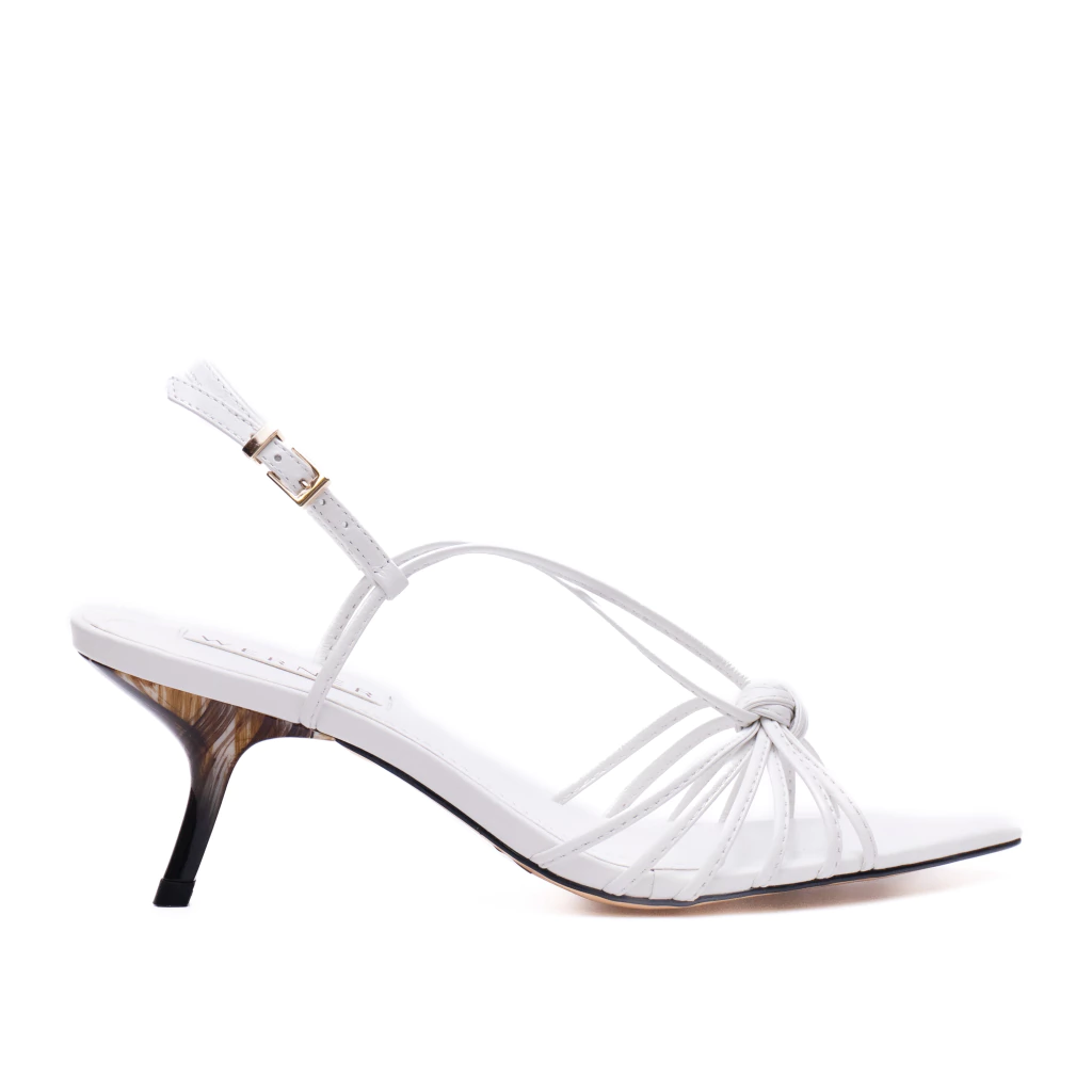 Com tiras finas em design entrelaçado e detalhe de nó frontal, a sandália Nyla adiciona um toque de charme ao visual. Possui fechamento ajustável por fivela para maior conforto e segurança. O salto médio na altura de 6,5cm, proporciona elegância sem comprometer o conforto, ideal para eventos formais ou passeios casuais.