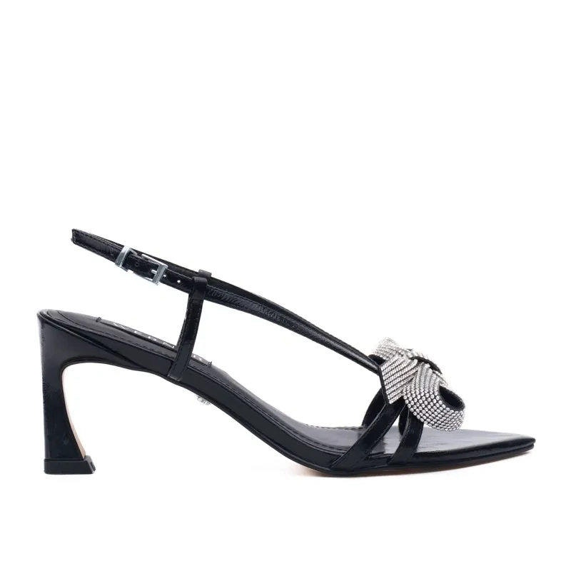 A sandália Luly apresenta um design elegante com tiras finas e uma aplicação de strass no peito do pé, formando um laço delicado que adiciona um toque de glamour ao visual. O salto médio na altura de 6,5cm oferece conforto sem abrir mão da elegância, enquanto o fechamento com fivela ajustável garante um ajuste seguro e personalizado.