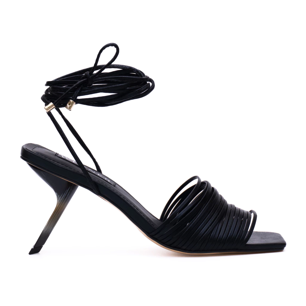 Com tiras finas metalizadas que envolvem o pé, a sandália Maya adiciona um toque de glamour a qualquer produção. O detalhe de amarração no tornozelo confere charme e ajuste perfeito, enquanto o salto esculpido quinado na altura de 8cm, garante conforto com um visual ousado.