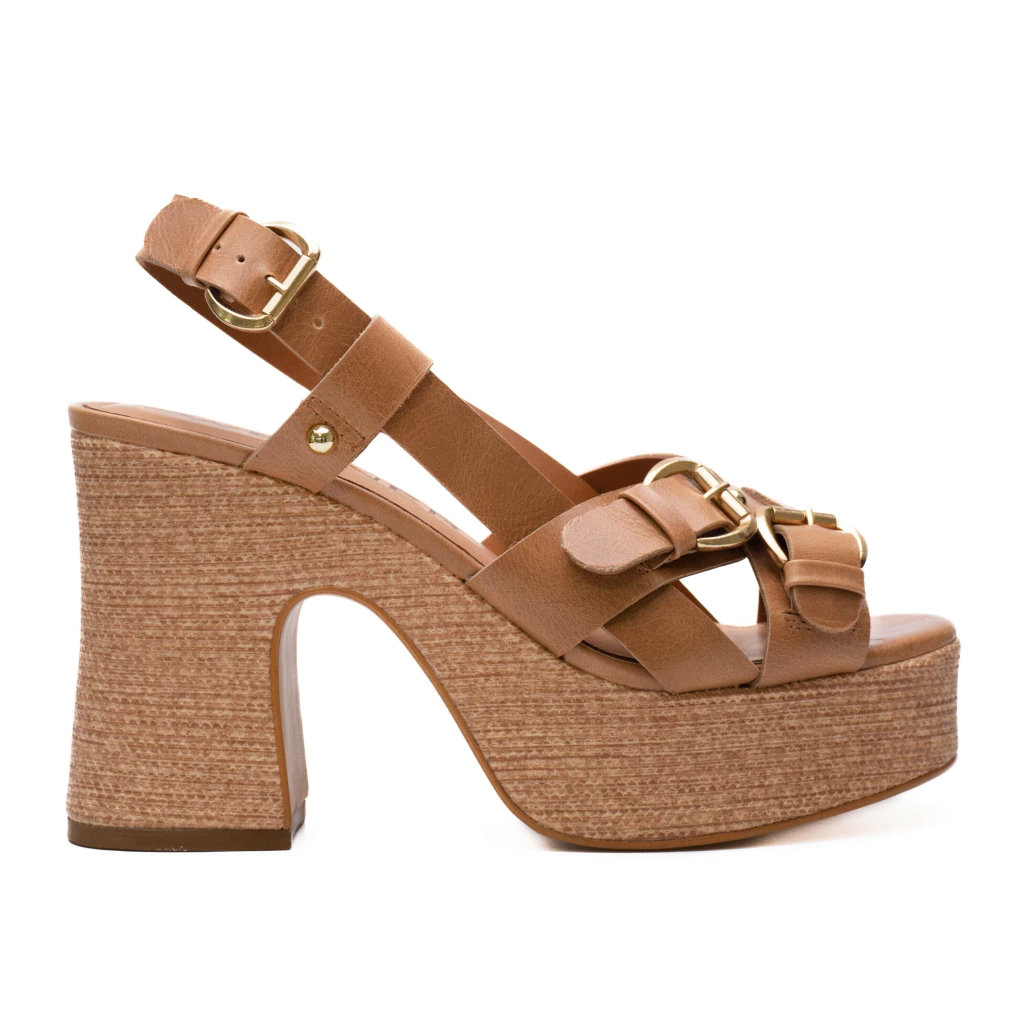 A cor desse modelo é um tom de marrom caramelo em material napa couro com textura suave e toque macio, plataforma forrada em napa tramado natural e palmilha em couro.