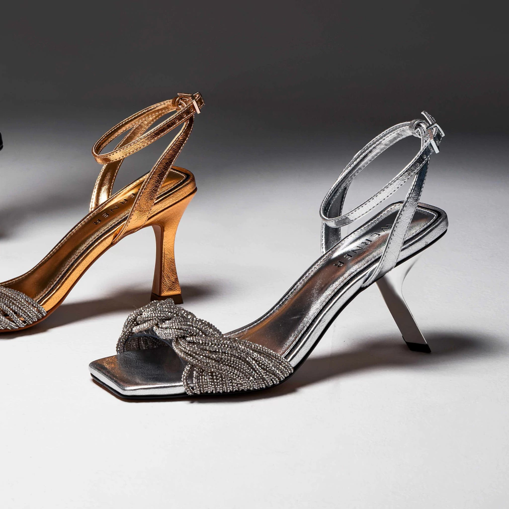 A sandália Nayla possui design glamouroso e detalhes de pedrarias que trazem brilho e elegância ao modelo. O cabedal apresenta uma aplicação trançada com strass, criando um visual impactante e perfeito para ocasiões especiais. A tira no tornozelo com fechamento ajustável e o salto médio na altura de 8cm, oferecem segurança e conforto.