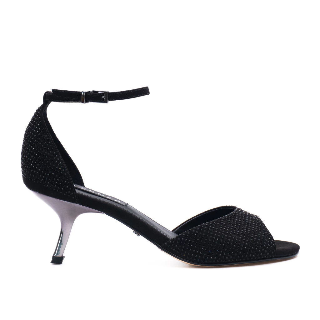 A sandália Leona de salto médio na altura de 6,5cm é a escolha perfeita para ocasiões que pedem elegância e conforto. Confeccionada em material camurçado com delicadas aplicações brilhantes, ela garante um visual sofisticado e moderno. Possui tira fina ajustável no tornozelo que proporciona segurança e delicadeza.