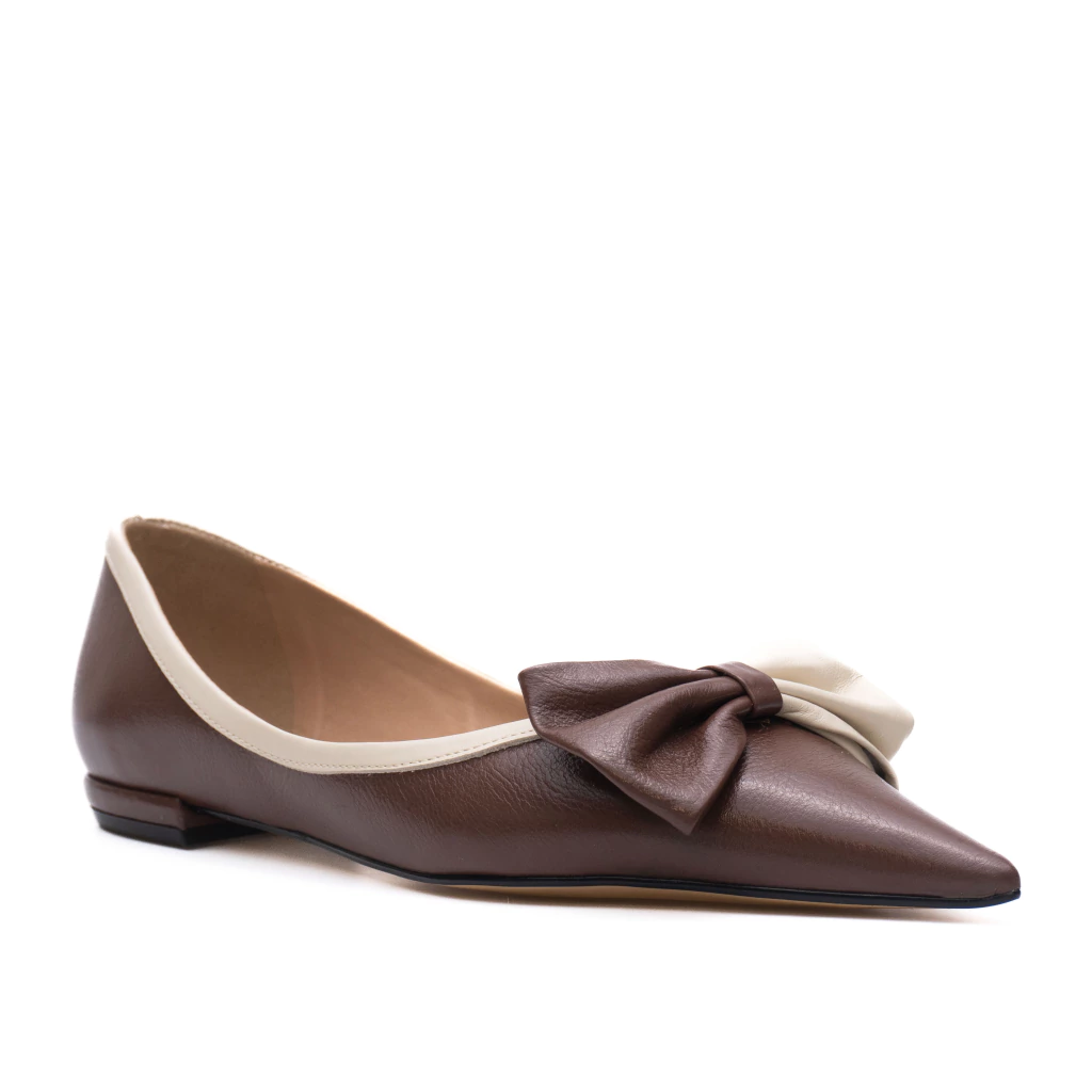A sapatilha Adella possui design bicolor, trazendo sofisticação e versatilidade. O modelo possui bico fino, acabamento delicado e um laço duplo em destaque no cabedal, garantindo um toque feminino e moderno.