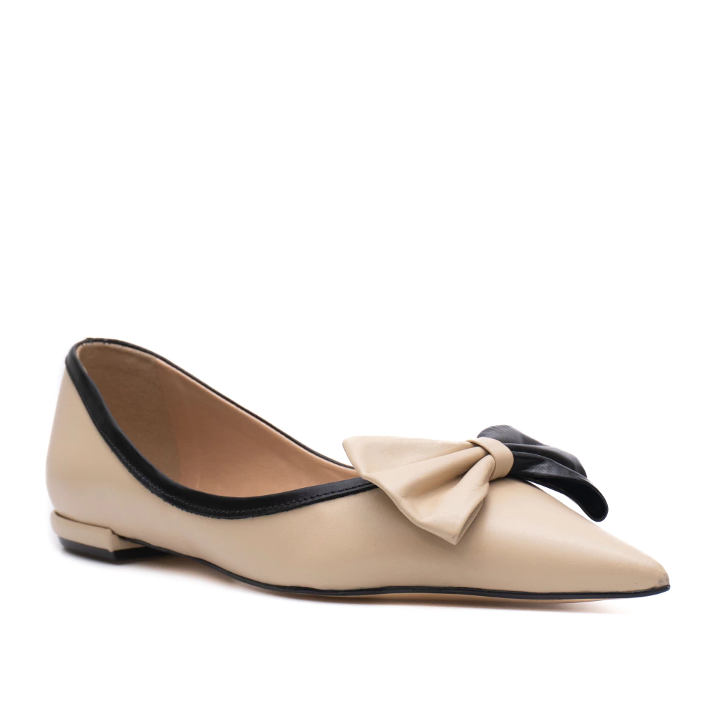 A sapatilha Adella possui design bicolor, trazendo sofisticação e versatilidade. O modelo possui bico fino, acabamento delicado e um laço duplo em destaque no cabedal, garantindo um toque feminino e moderno.