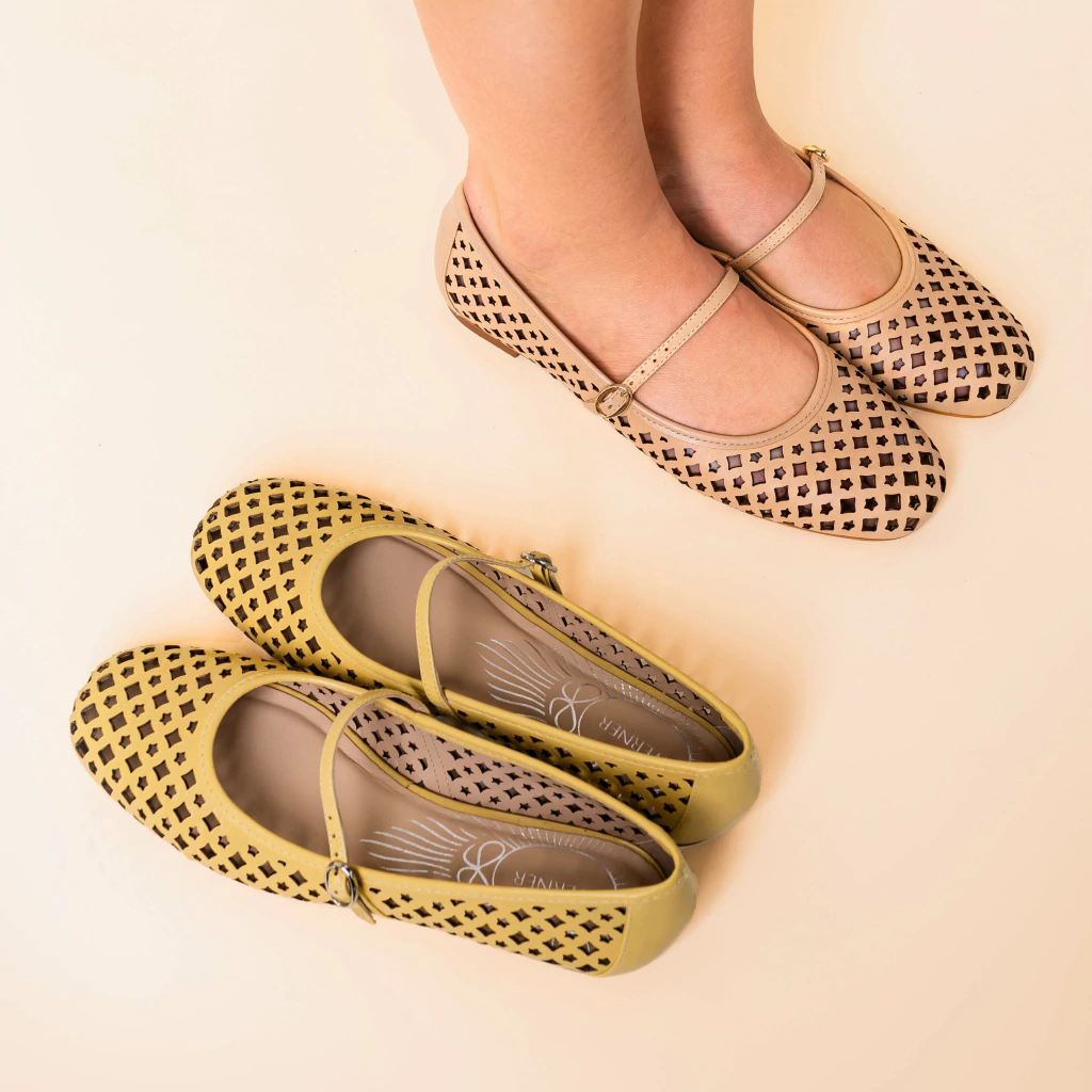 A sapatilha Kalany é a combinação perfeita entre conforto e estilo delicado, ideal para acompanhar o ritmo do dia a dia com elegância. Com um design moderno, o grande destaque está nos recortes a laser distribuídos por toda a extensão do calçado, que adicionam um toque divertido e sofisticado. O fechamento com tirinha fina e fivela ajustável confere charme extra e garante maior segurança ao caminhar.