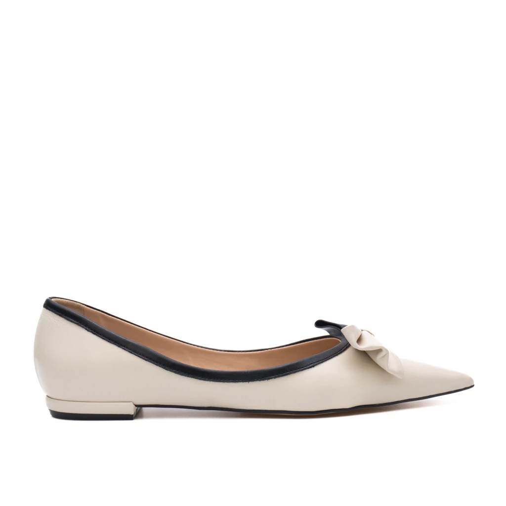 A sapatilha Adella possui design bicolor, trazendo sofisticação e versatilidade. O modelo possui bico fino, acabamento delicado e um laço duplo em destaque no cabedal, garantindo um toque feminino e moderno.