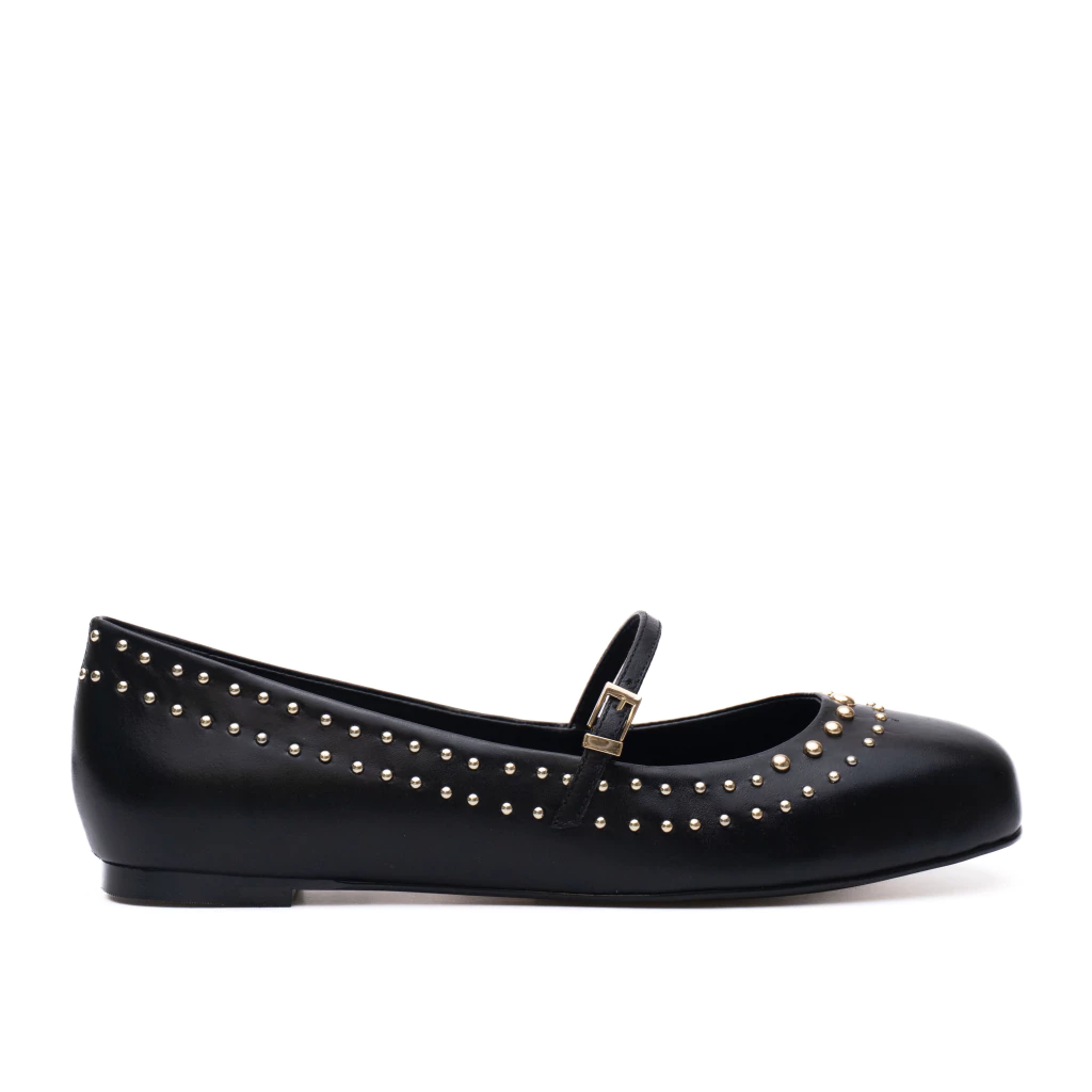 A sapatilha Ranya tem estilo bailarina, combina sofisticação e conforto em um design clássico com toques modernos. A sapatilha apresenta um acabamento com aplicações metálicas e conta com um bico arredondado, garantindo conforto extra. Além disso, a presença de uma tira fina ajustável com fivela oferece um ajuste seguro e charmoso.