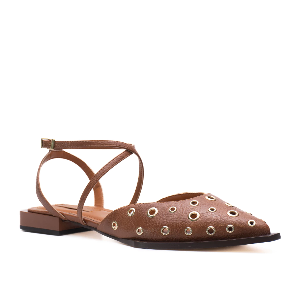A sapatilha Pietra possui design moderno e detalhes em ilhós no cabedal, trazendo um toque de estilo e personalidade. O modelo apresenta bico fino, conferindo elegância e delicadeza ao visual, além de tiras finas que contornam o tornozelo, garantindo ajuste perfeito e um charme extra. Com fechamento por fivela lateral e solado baixo, proporciona conforto e praticidade para o dia a dia.