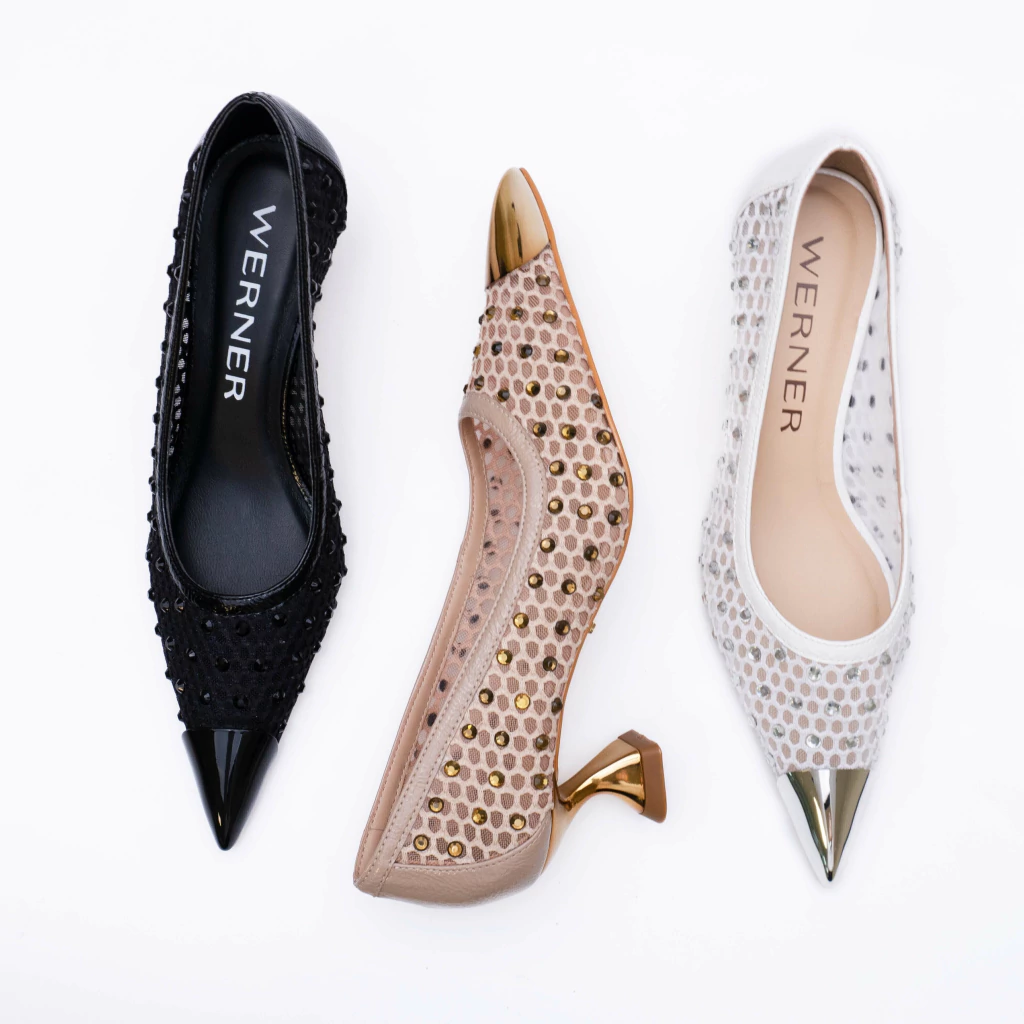 O elegante scarpin Katherine de salto médio é uma escolha sofisticada e moderna para mulheres que procuram um toque de glamour no seu visual. O bico metálico prateado adiciona um contraste ousado e contemporâneo ao modelo, combinando perfeitamente com o salto escultural em formato geométrico. O salto médio na altura de 5cm proporciona estabilidade e conforto para uso prolongado, tornando este modelo ideal tanto para eventos especiais como para ocasiões em que o estilo e o bem-estar devem andar de mãos dadas.