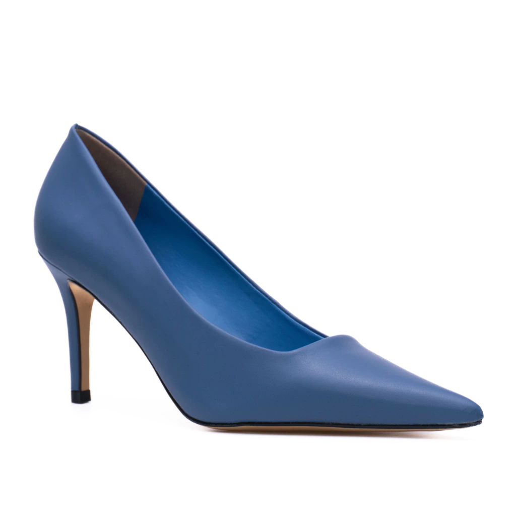 A cor desse modelo é um tom de azul em material napa couro liso.