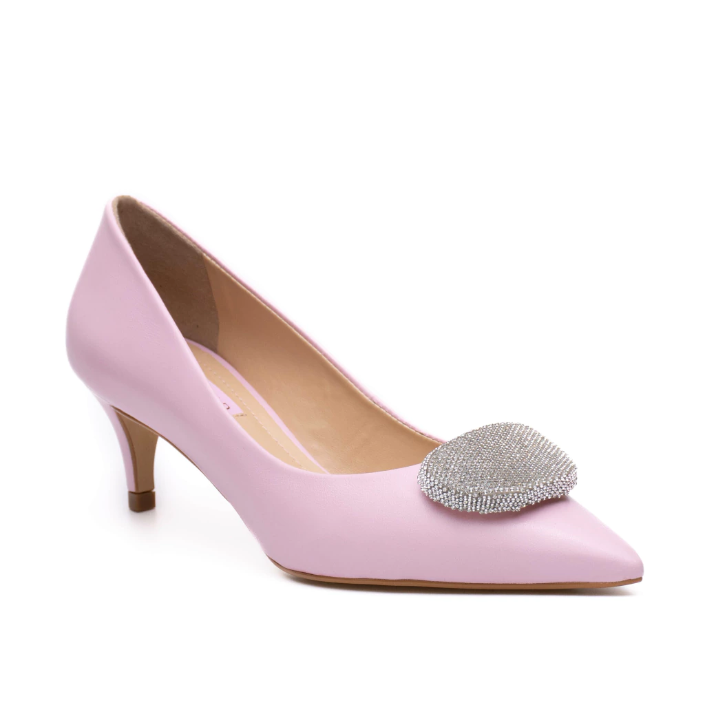 Eleve seu estilo com o Scarpin Couro Rosa Salto Baixo Paloma Werner. Este sapato é a escolha perfeita para adicionar um toque de elegância e sofisticação a qualquer look. Feito para estilo e durabilidade, é ideal para acompanhar você em ocasiões especiais ou no dia a dia com muito estilo e charme. Apresenta salto na altura de 4cm e seu grande destaque é o enfeite todo forrado com brilho na parte frontal.