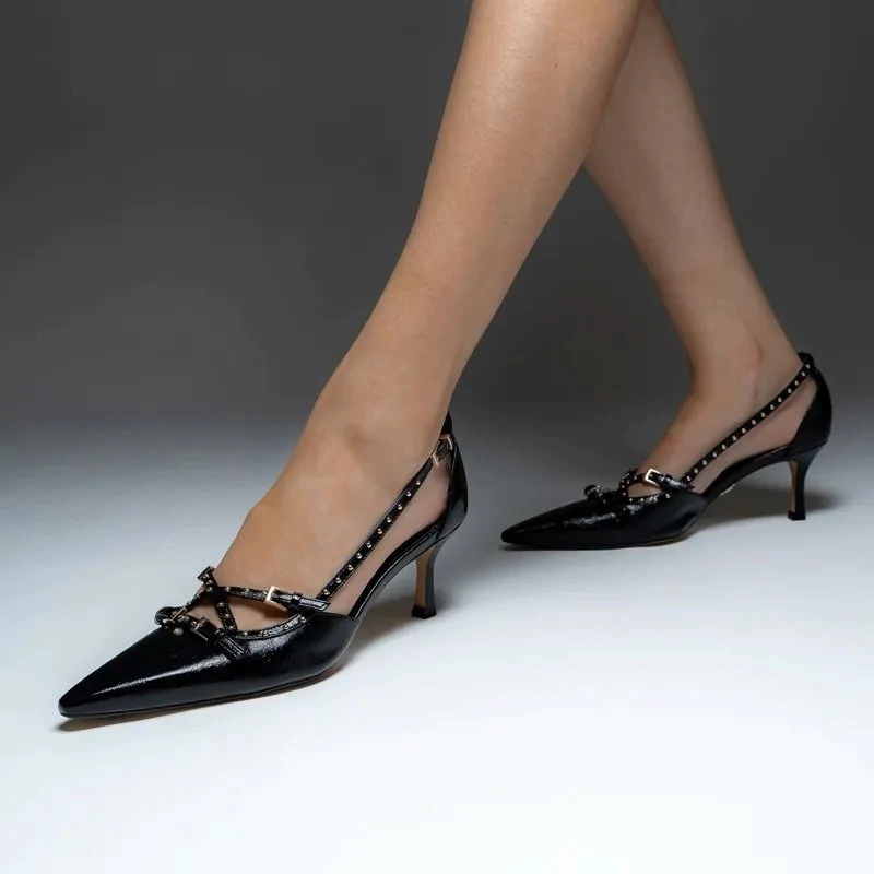 Com bico fino e salto médio na altura de 6,5cm, o scarpin Holly é perfeito para quem busca um toque refinado e moderno em qualquer ocasião. Seu design conta com detalhes em tachas e fivelas decorativas. A tira ajustável na lateral garante conforto e segurança ao caminhar. Ideal para compor looks clássicos e sofisticados, desde eventos formais até produções do dia a dia com um toque de glamour.