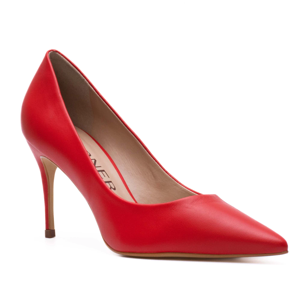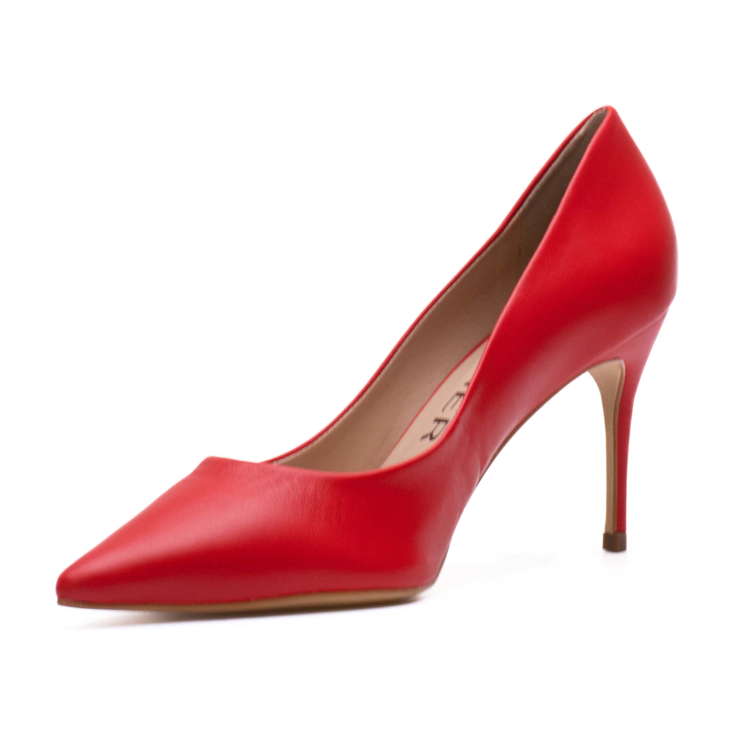 A cor desse modelo é um tom de vermelho em material napa couro liso. É uma cor intensa e marcante.