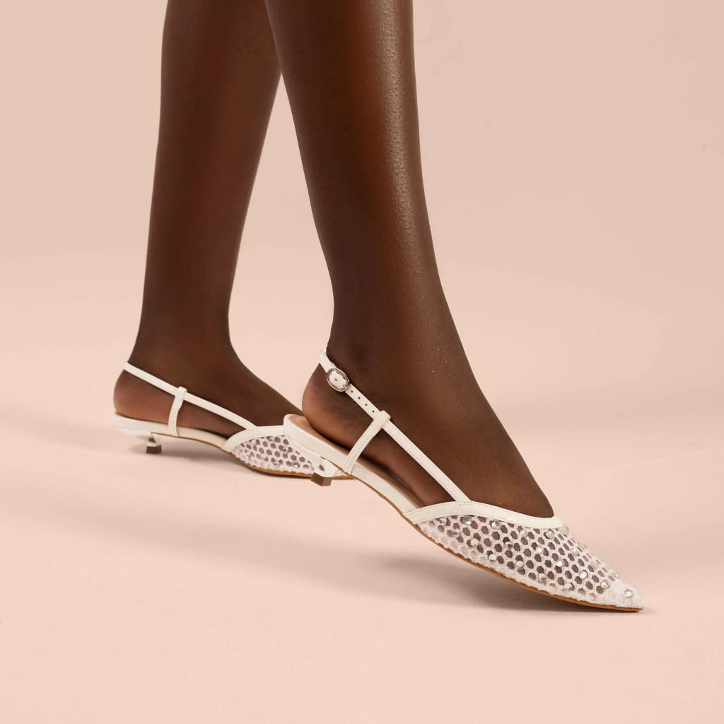 Este slingback Katherine é a escolha ideal para mulheres que procuram aliar elegância, leveza e sofisticação num só modelo. Com um design contemporâneo. A estrutura aberta na parte de trás, com tira ajustável no tornozelo, garante um ajuste seguro e confortável, enquanto o pequeno salto fino de 2cm acrescenta um toque de elevação discreta, ideal para quem valoriza o conforto sem abdicar do estilo.