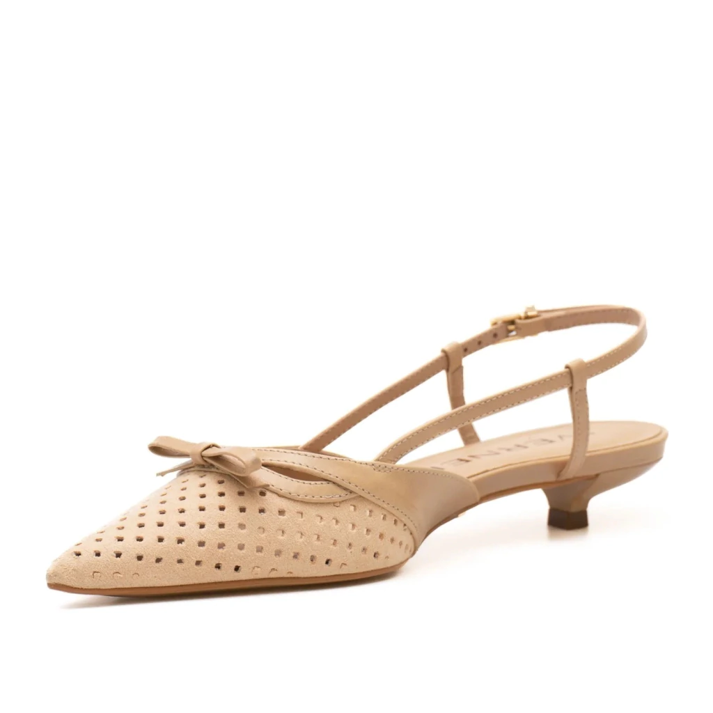 O slingback Íris é a escolha ideal para quem procura elegância e conforto em cada detalhe. Com um design sofisticado, o modelo apresenta bico fino e salto baixo na altura de 2cm. O detalhe do laço discreto adiciona um charme delicado, enquanto as tiras finas com fecho ajustável asseguram um encaixe seguro e confortável.