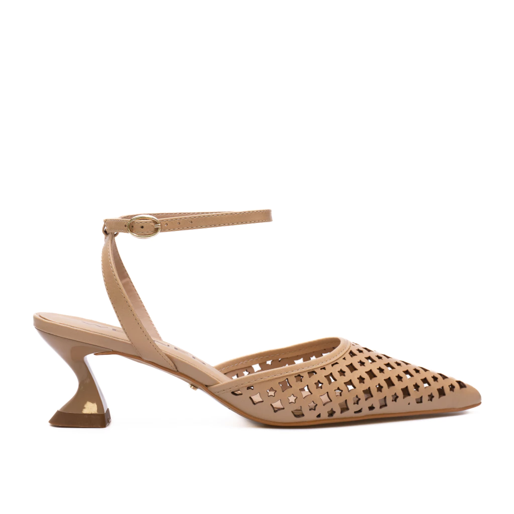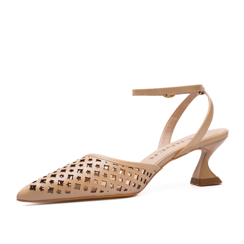 O slingback Kalany é perfeita para quem procura estilo e conforto no mesmo passo. Este modelo apresenta um design sofisticado com bico fino e recortes a laser, que conferem leveza, charme e um toque moderno. O salto médio na altura de 5cm, oferece estabilidade sem comprometer o estilo. A tira ajustável no tornozelo proporciona um ajuste seguro e delicado.