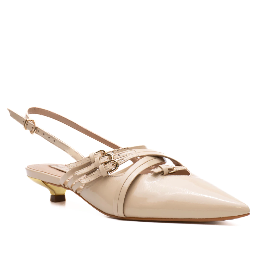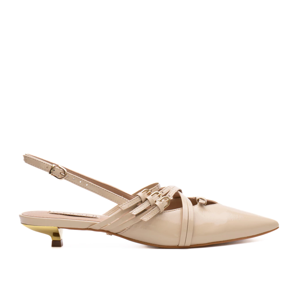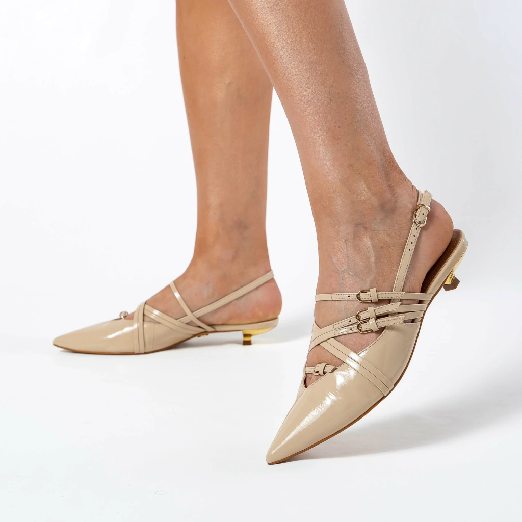 O slingback Sophie combina o design clássico com um toque moderno, trazendo detalhes sofisticados em tiras e fivelas delicadas. O salto kitten de 2 cm proporciona leveza e estilo, ideal para o dia a dia. Ajuste perfeito com tira regulável no tornozelo.